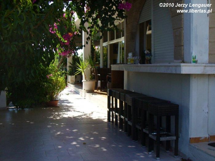 Zaglądamy, zatem foxem w kolejne uliczki bez chodników. Piesi się nie przejmują. Rowery i skutery tarasują przejazd. Wszystko to już znamy z Rodos i kilku miejscowości, przez które przejeżdżaliśmy w środku wyspy. A co będzie, jak z na przeciwka nadjedzie ciężarówka? Na przykład ogromny tir od Coca-Coli? Wedle wskazówek A. flago kauflandowe mają być widoczne z głównej ulicy. Tyle razy tędy przejeżdżaliśmy, a nie przypominam sobie, żebym je widział.