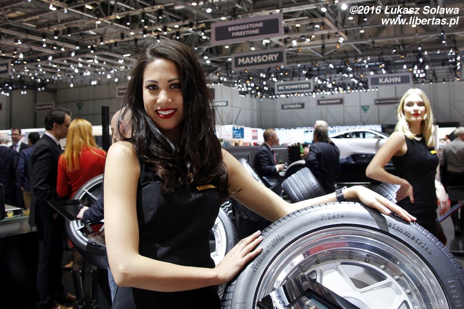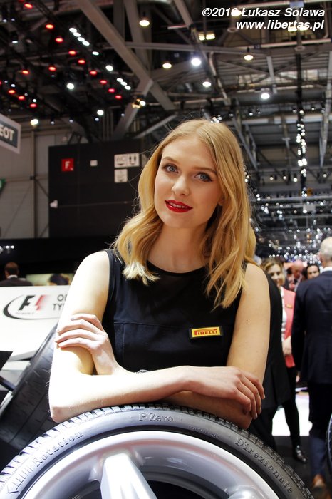 Według mojej subiektywnej oceny, najatrakcyjniejsze modelki spotkać można było przy stoiskach producentów opon samochodowych (Pirelli, Dunlop, Bridgestone). I chyba nie ma się czemu zbytnio dziwić. Jaka normalna osoba zwróciłaby uwagę na oponę czy felgę stojącą na jakimś postumencie z doczepioną do niej tabliczką z parametrami, podczas gdy kilka kroków dalej odbywa się premiera najnowszego modelu Astona Martina czy innego Lamborghini. No chyba że o tę samą oponę opiera się uśmiechnięta modelka w kusej spódniczce – wtedy sprawa wygląda zupełnie inaczej.