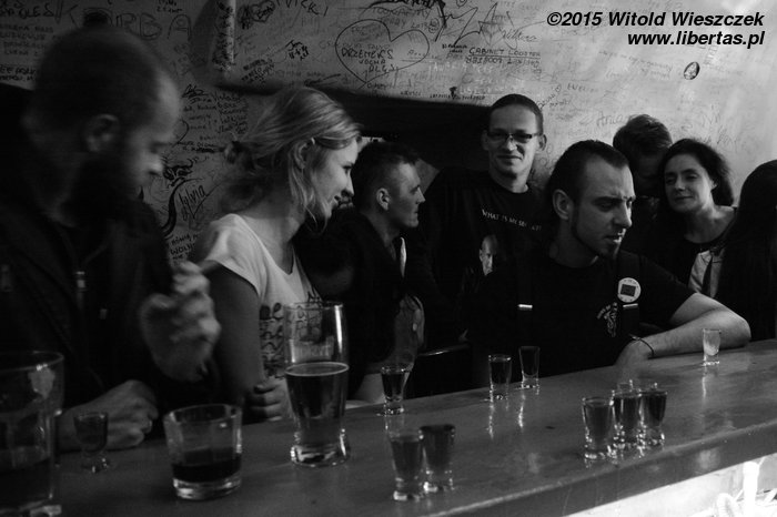 W każdym razie po takim koncercie nie można po prostu sobie wyjść i iść do domu. To by groziło burdami na mieście i zniszczeniami idącymi w tysiące złotych. O nie, lepiej nie ryzykować. Przed wyjściem koniecznie trzeba się ochłodzić piwem, zwłaszcza że jest to dobra okazja, żeby jeszcze pogadać o nowych koncepcjach sztuki, a nawet zaśpiewać „Hej, żeglujże żeglarzu” tudzież spostrzec, że w damskiej ubikacji napisane jest „głupi kaowiec”.