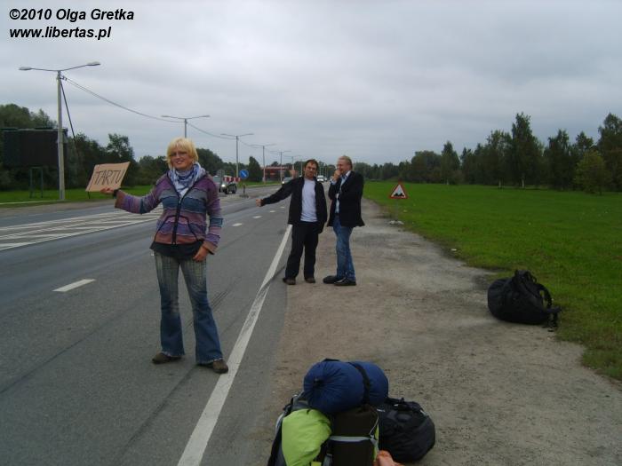 I zaczęła się przygoda! Gdy Ojcowie nas wysadzili przy tallińskim lotnisku na przystanku już mieliśmy „konkurencję”. Właściwie to nie do końca była „konkurencja”, bo ów mężczyzna łapiący okazję do Tartu na dzień dobry stwierdził, że przy tak pięknych dziewczynach jak my to on nie ma szans, więc chyba złapie taksówkę. Chwilę postaliśmy razem i pojawiła się czwarta osoba, która też chciała w tym kierunku co my jechać...