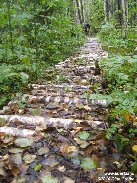 Najlepiej w jego rejony dojechać samochodem. Drogi, nawet w głębi parku, są wyśmienite. Porządnie ubite, bez dziur. Nas zawiozła tam Maarja, nasza gospodyni a zarazem organizator wycieczek po okolicy. Soomaapark to lasy i ogromna ilość bagien. I nader dobra infrastruktura turystyczna. Przy początku ścieżki, którą zamierzaliśmy przejść, znaleźliśmy nie tylko czysty wychodek, ale też mały drewniany domek, w którym w cieplejsze noce można nawet się przespać!