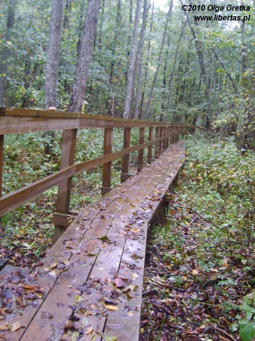W okolicy kwietnia z powodu silnych roztopów nie ma za bardzo jak cieszyć się tutejszymi mokradłami, ale my byliśmy tam we wrześniu, więc mogliśmy wędrować do woli. Szlak, który przeszliśmy, miał około czterech kilometrów i prawie w całości składał się z drewnianych kładek umocowanych nad grząskim terenem. W co bardziej niebezpiecznych miejscach miały one nawet poręcze! Część trasy prowadziła lasem, część zaś był to teren ze z rzadka porozsiewanymi drzewami, jeziorami i mnóstwem przyziemnej roślinności. Według przewodnika na terenie parku znajdziemy ponad 537 roślin bagiennych, 185 rodzajów ptaków i 43 gatunki ptaków! Liczby mówią same za siebie. Reszty niech dopełnią zdjęcia.