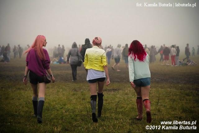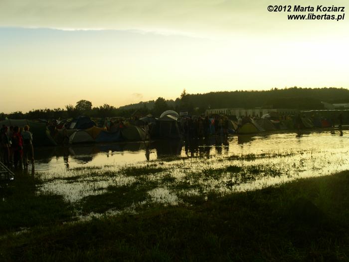 Zanim ze scen rozległy się pierwsze dźwięki inaugurujące kolejną edycję festiwalu, trzeba było przecież „zainstalować” swój tymczasowy dom na gigantycznym polu namiotowym. Od pierwszego dnia niestety aura nie sprzyjała i wielu festiwalowiczów było zmuszonych do walki z namiotowymi śledziami, rurkami i sznurkami w strugach deszczu. Nam, na szczęście, udało się poradzić z tym oprzyrządowaniem dość szybko i to jeszcze przed oberwaniem chmury, także z lekką satysfakcją muszę przyznać, obserwowałyśmy mężczyzn jeszcze walczących i moknących z wnętrza naszego bezpiecznego i suchego poliestrowego azylu. Na całe szczęście pogoda okazała się na tyle wyrozumiała, iż podczas pierwszych koncertów nie musieliśmy już moknąć.
