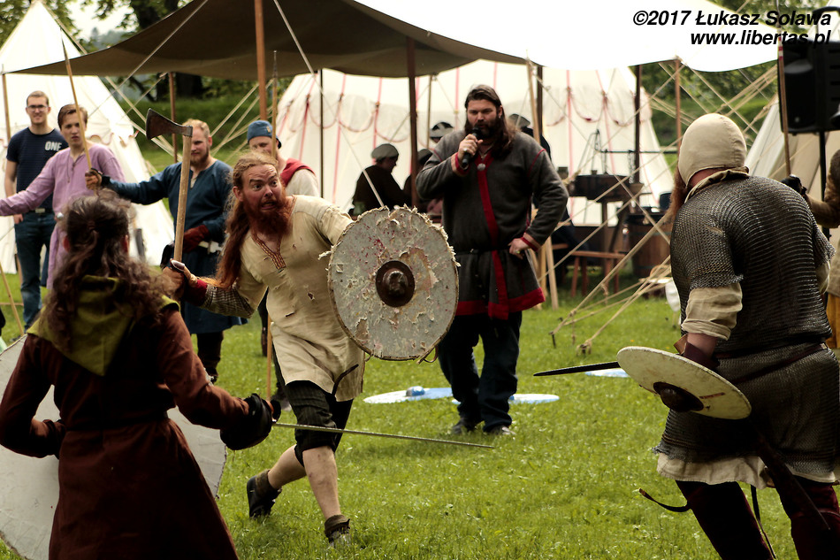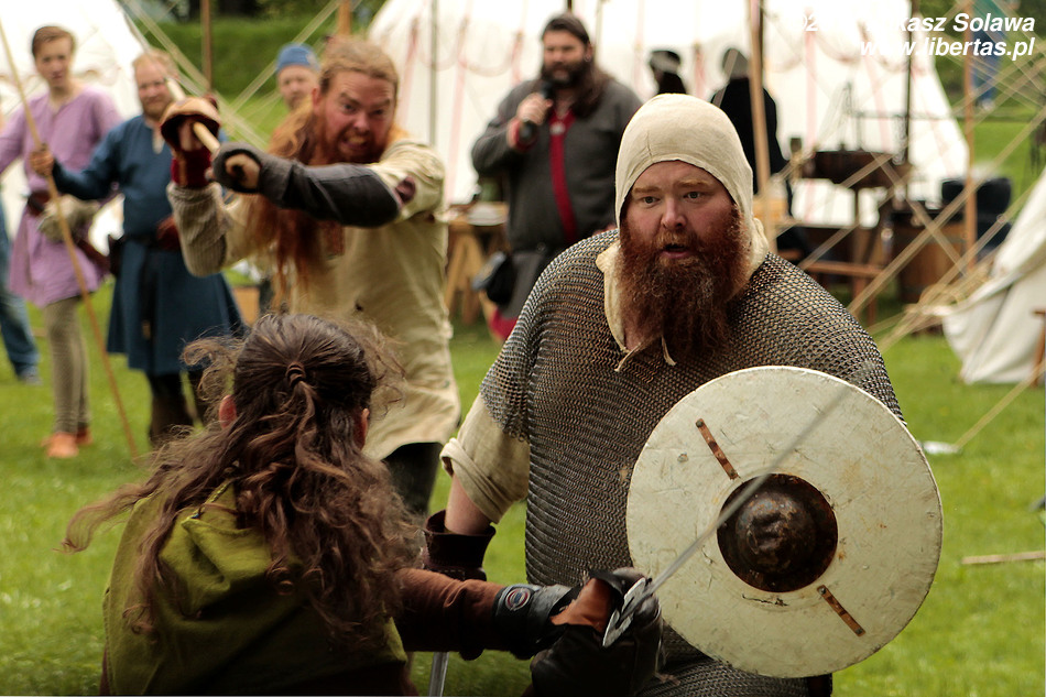 Program niedzielny był poniekąd okrojonym programem sobotnim – nie było turniejów rycerskich, a zwiedzanie trwało tylko do godziny 18, podczas gdy dzień wcześniej miejsce imprezy było otwarte dla odwiedzających do godziny 20. Inna była również tematyka wykładów czy prelekcji. Poza tym znów odbywały się koncerty, walki i spektakle. Po południu handlujący powoli zaczynali myśleć o składaniu namiotów, zwłaszcza że odwiedzających było nieco mniej. Ale ogólnie i tak warto było zaliczyć również ten dzień – chociażby po to, by zobaczyć jak jeden z uczestników markowanych bitew (ten z bujną czupryną) odnosi prawdziwe rany. Przeżył.