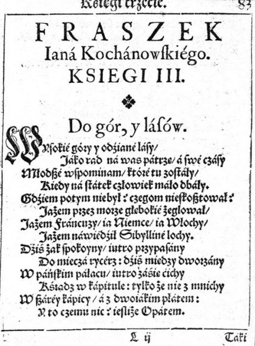Fraszki Jana Kochanowskiego, księgi pierwsze (1-34)Fraszki Jana Kochanowskiego, księgi pierwsze (35-68)Fraszki Jana Kochanowskiego, księgi pierwsze (69-96)Fraszki Jana Kochanowskiego, księgi wtóre (1-36)Fraszki Jana Kochanowskiego, księgi wtóre (37-70)Fraszki Jana Kochanowskiego, księgi wtóre (71-105)Fraszki Jana Kochanowskiego, księgi trzecie (1-28)Fraszki Jana Kochanowskiego, księgi trzecie (29-56)Fraszki Jana Kochanowskiego, księgi trzecie (57-85)