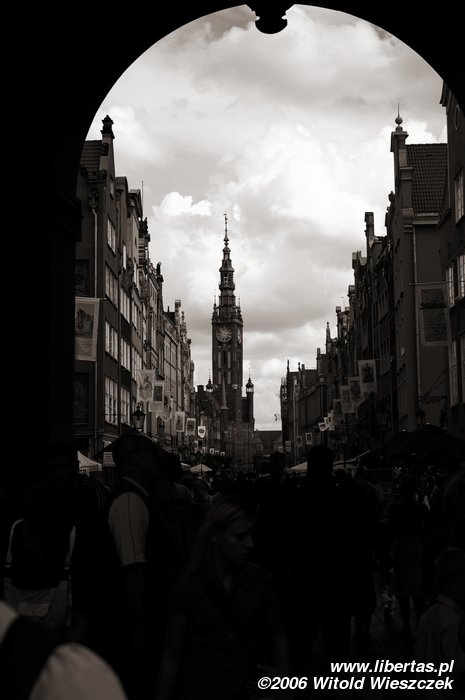 Idąc od dworca, pod czujnym okiem Fortuny i jej siedmiu koleżanek wchodzimy przez Złotą Bramę na ulicę Długą. Rząd pięknych kamienic zdaje się ciągnąć w nieskończoność i w wystarczający sposób uzasadniać jej nazwę. Dochodzimy do Ratusza.