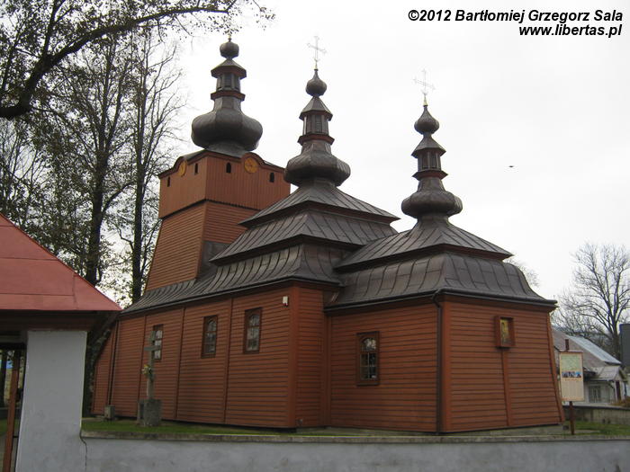 Nad Osławą rozpoczynały się już siedziby innych ruskich górali – Łemków – którzy śmiało zasiedlili Beskid Niski i wschodnią część Beskidu Sądeckiego, wahając się zresztą (głównie za sprawą słynnej schizmy tylawskiej) pomiędzy katolicyzmem greckim a prawosławiem. I tak, jak w etosie i kulturze łemkowskiej obecne są wyraźne wpływy lechickie, tak tutejsze drewniane świątynie, na ogół wpisujące się bryłą w trójkąt prostokątny, łączą w sobie czar ruskich cerkwi i kościółków polskich górali, choć i tutaj z czasem podjęto mało skuteczne próby wprowadzenia stylu „ukraińskiego”. Takiego czaru nie sposób odmówić wyciosanym łemkowskimi rękami przybytkom w Kotaniu, Świątkowej Małej, Gładyszowie (wyjątkowo typ huculski), Skwirtnem, Kwiatoniu, Owczarach, Muszynce, Tyliczu, Wojkowej, Powroźniku czy Szczawniku. Zaś pośród nich wyrosła murowana świątynia w Polanach, onieśmielająca błyszczącą w słonecznych promieniach masywną kopułą.
