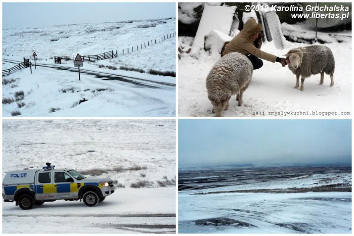 Pub i zajazd Tan Hill położony jest w sąsiedniej dolinie Swaledale, niedaleko wioski Reeth i prowadzi do niego wąska, kręta droga. W dzień, kiedy u mnie świeci słońce i jest nieco ponad 0 stopni Celsjusza, w okolicach pubu można zastać prawdziwą zimę. Scenerię niczym w filmie „Fargo” dopełnił przejeżdżający radiowóz. Przed pubem można się poprzytulać do owiec, które zachowują się jak psiska. Owce są tam zwierzętami domowymi, ulubieńcami, tak samo jak psy oraz kot i są one stałym i charakterystycznym elementem tego miejsca.