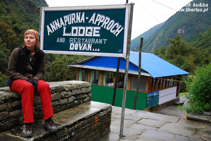 Do położonego na wysokości 2505 m n.p.m. Doban (Dovan), minąwszy wcześniej Deurali, jaskinię Hinku (Hinku Cave) i Himalaya Hotels, docieramy wczesnym popołudniem. Przyjazne miejsce: spokój i cisza, turystów jak na lekarstwo. Kwaterujemy się w Annapurna-Approach Lodge. Jest wyraźnie taniej niż u góry. Nocleg to, jak prawie wszędzie, śmieszne 200 rupii od pary, co jednak ważniejsze – ceny piwa i innych napojów ponownie zaczynają mieścić się w granicach rozsądku. No i nie trzeba już trwonić rupii na ciepły prysznic. Na termometrze 16 stopni – w takiej temperaturze kąpiel w zimnej wodzie nie jest niczym strasznym.