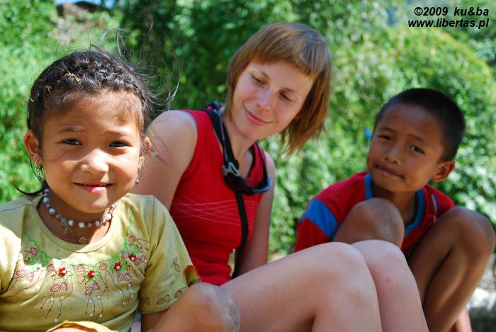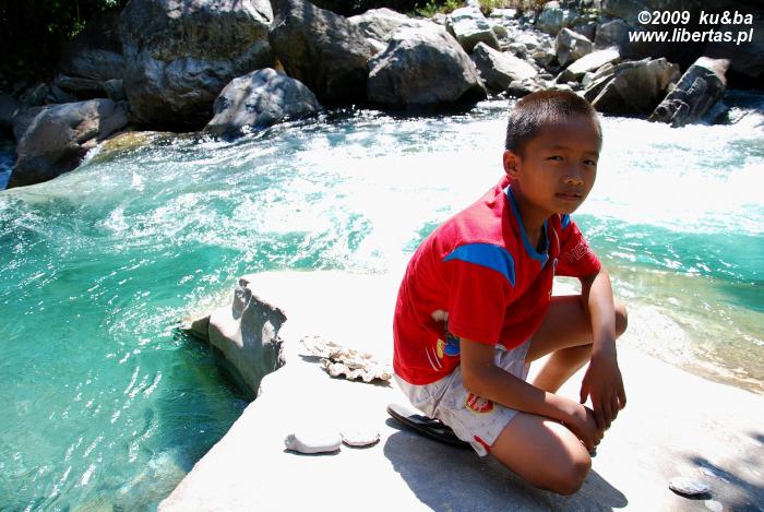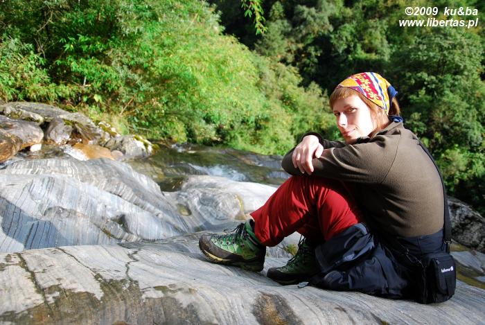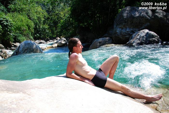 Kiedy rozpoczynaliśmy nasz trekking Birethanti nie wywarło na nas żadnego wrażenia. Dziś nie potrafimy zrozumieć, jak to możliwe. W tej niewielkiej, naprawdę przyzwoicie i w miarę logicznie – co rzadko jest w Nepalu normą – zagospodarowanej wiosce, położonej nad brzegami mlecznoniebieskiej rzeki Modi Khola i jej spiętrzonego, malachitowego dopływu – Bhurundi Khola, odkryć można przecież tyle piękna. Zupełnie nie żal nam tutaj atrakcji, jakie czekały na nas być może w Pokharze. Rozgaszczamy się w Green View Lodge – położonym wśród okazałych bananowców hoteliku i już po kwadransie kąpiemy się w słońcu i cudownie chłodnej górskiej wodzie. W naszym lenistwie towarzyszą nam zainteresowane bladymi przybyszami nepalskie dzieci. Rozmawiamy, wymieniamy się informacjami o naszych światach, wygłupiamy się. W przyjaznej atmosferze szybko mijają kolejne godziny. Znad wody wygania nas dopiero popołudniowy głód.