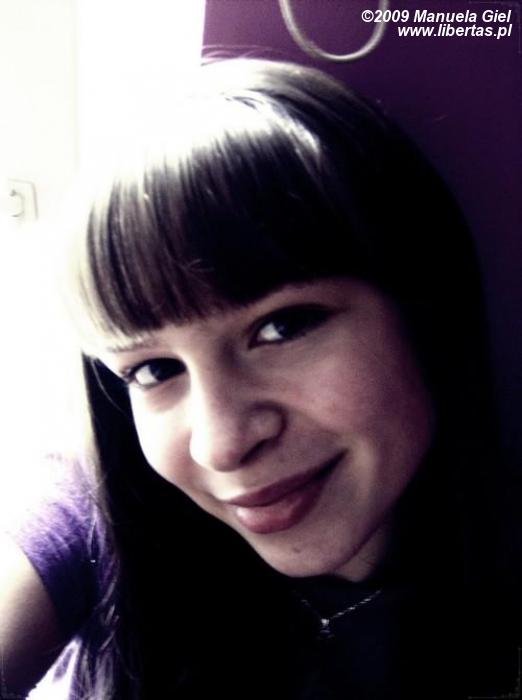 Mam na imię Manuela, mówią na mnie Mani. Mam 16 lat. Uczęszczam do II LO w Tychach, tam najczęściej można mnie znaleźć. Bardzo lubię czytać książki, jestem wręcz przysłowiowym molem. Do moich głównych zainteresowań należy także zbieranie kalendarzyków kieszonkowych, zajmuję się tym od ponad 8 lat. Bardzo lubię zwierzęta, mam psa Maxa i od niedawna szczura Kubusia.