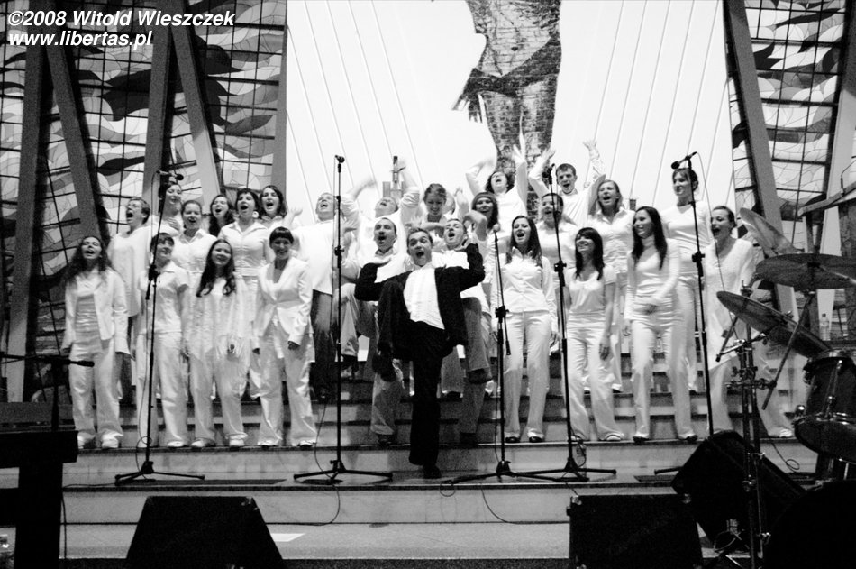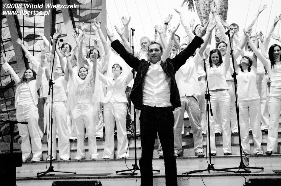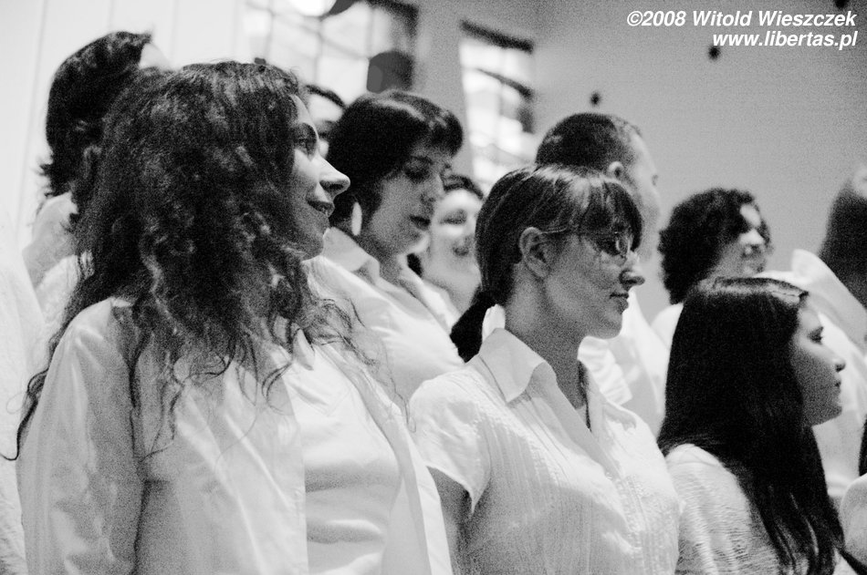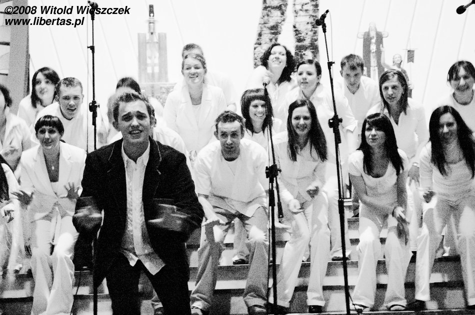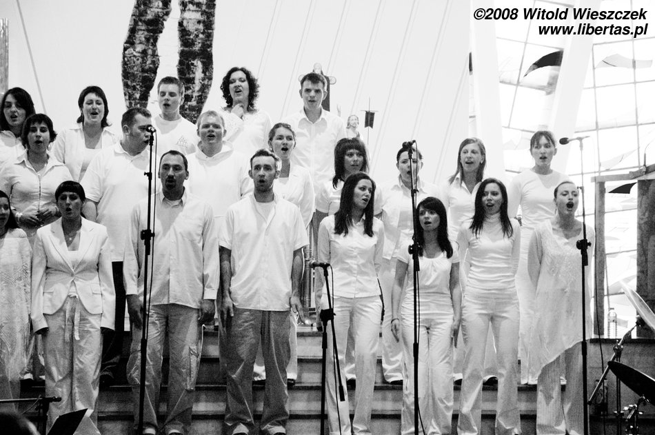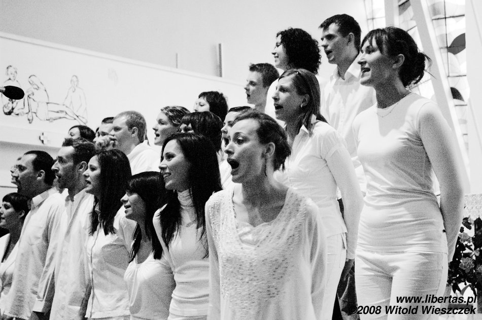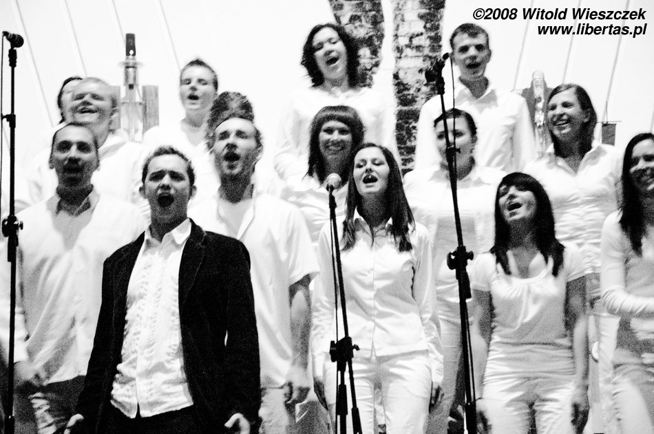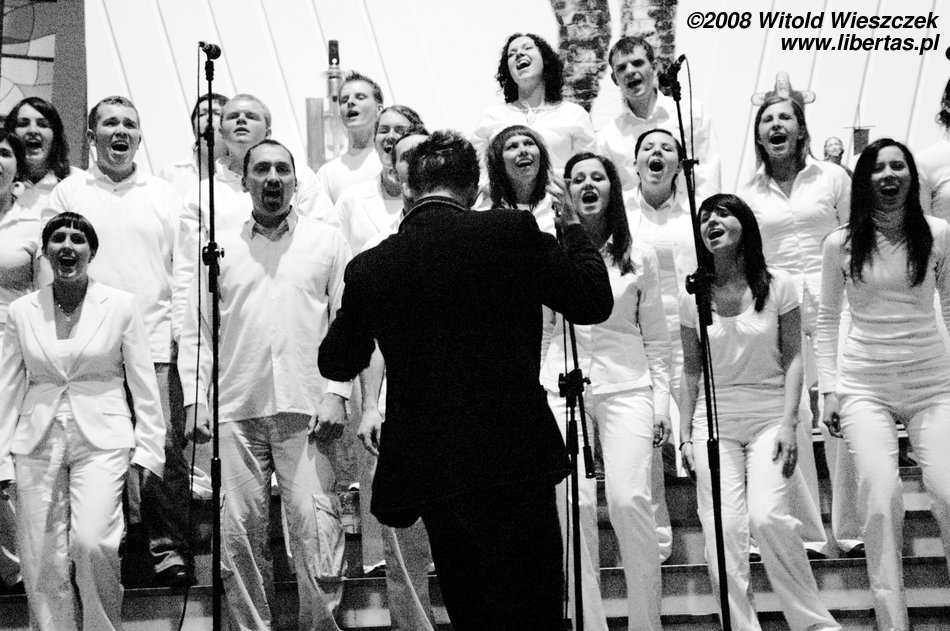 Nie. Na szczęście to tylko fałszywy alarm, tym razem jesteśmy na czas, to była tylko próba. Adam Saczka gromadzi jeszcze wokół siebie swoich podopiecznych i dodaje im sił przed występem. Chór zajmuje swoje miejsce. Zaczynamy!