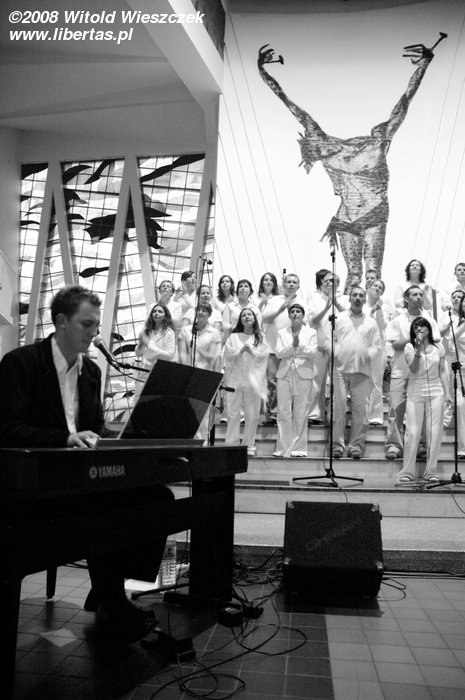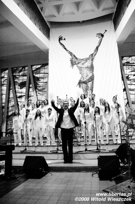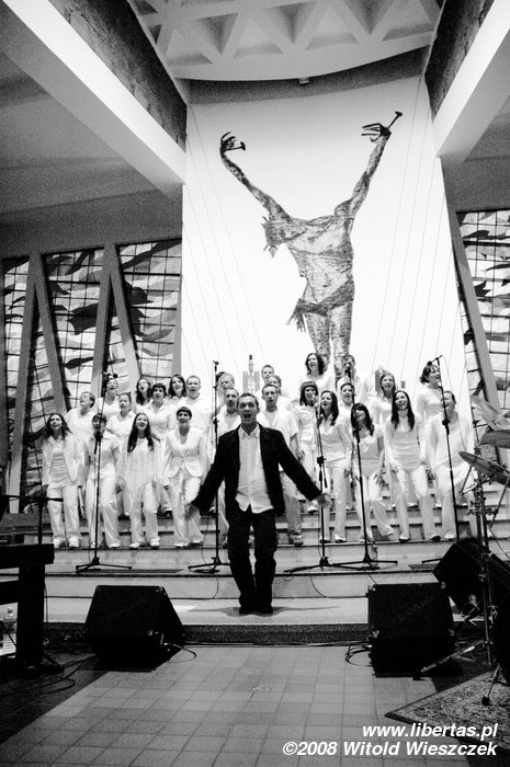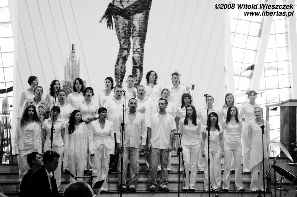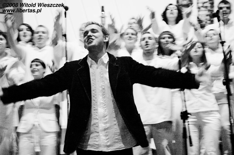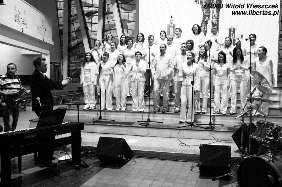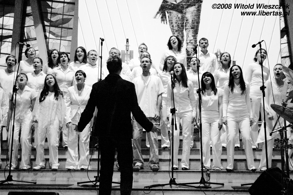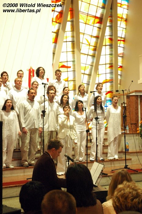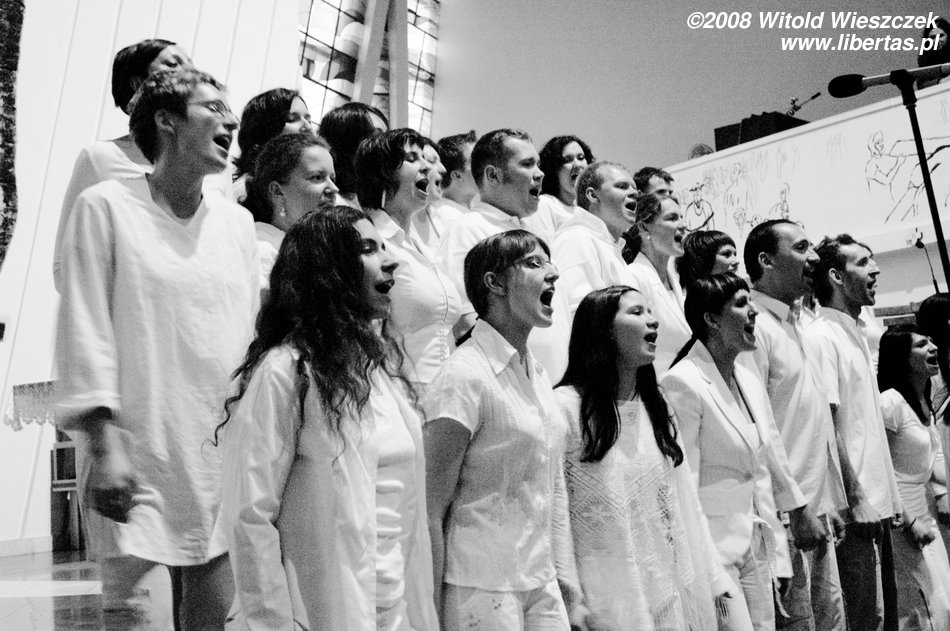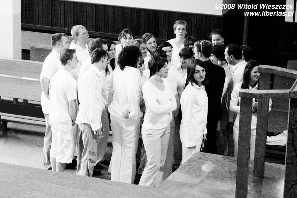 Nie. Na szczęście to tylko fałszywy alarm, tym razem jesteśmy na czas, to była tylko próba. Adam Saczka gromadzi jeszcze wokół siebie swoich podopiecznych i dodaje im sił przed występem. Chór zajmuje swoje miejsce. Zaczynamy!