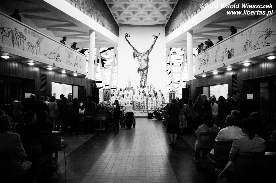 Może jednak wejdźmy już do kościoła, bo co prawda nie ma jeszcze dziewiętnastej, ale wyraźnie słyszę śpiewy, czyżbyśmy się znowu spóźnili?