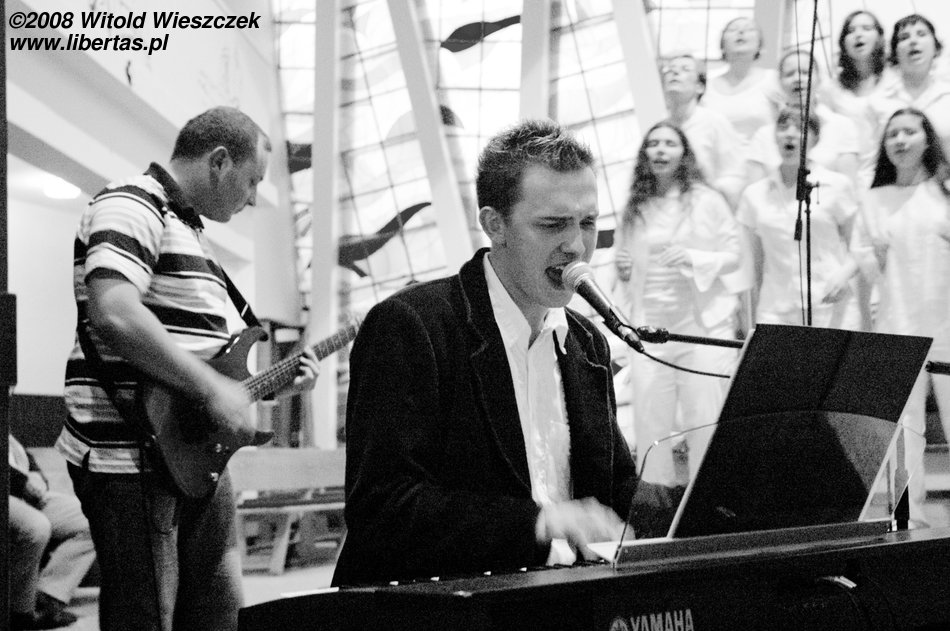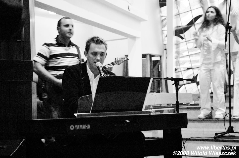 No to czas na prezentacje. Założycielem, a jednocześnie dyrygentem chóru God's Property jest bardzo energiczny i sympatyczny Adam Saczka. Poza tym, że dyryguje, śpiewa i tańczy, to jeszcze gra na instrumentach klawiszowych! Panie i panowie, przed Wami człowiek orkiestra: