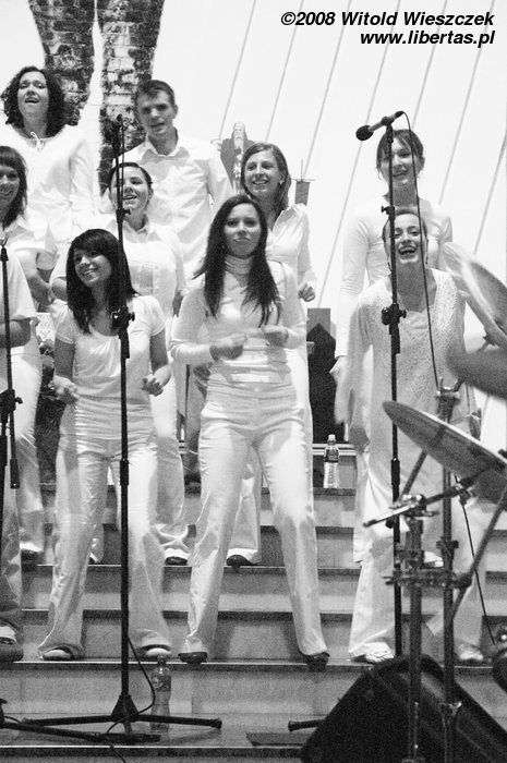 Nie wypada mi pominąć sekcji tanecznej, dziewczyn, które swoją energią mogłyby obdzielić ze trzy takie zespoły! Oczywiście wszyscy chórzyści kolebią się do rytmu, ale nasze drogie koleżanki rozsadza taka energia, że kiedy jeszcze dyrygent ustawiał je w środku, to dezorganizowały występ, a przewracający się jak kostki domina chór powodował zbyt duże straty materialne! Teraz zachwycają nas swoim entuzjazmem w całkowicie bezpieczny sposób, zawsze na lewej flance. Panie i panowie, oto: