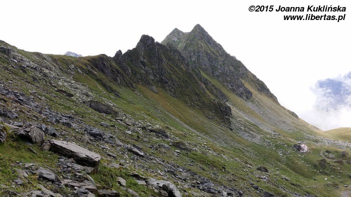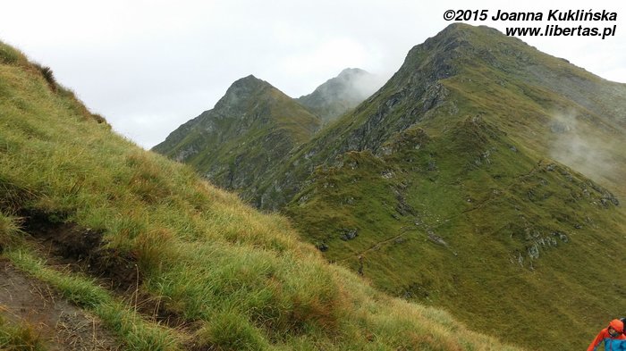 Trasa rozpoczyna się ze schroniska Balea Lac. Wspinamy się stromą ścieżką szlakiem niebieskiego krzyżyka w kierunku południowo wschodnim na Kozią Przełęcz (Saua Capra 2315 m n.p.m.). Po około 45 minutach osiągamy przełęcz. Przy dobrej pogodzie powinniśmy mieć widok na Lacul Capra. Nam jednak nie dane były takie atrakcje. Wspinaliśmy się we mgle, która stawała się coraz gęstsza, a nasze odzienie coraz bardziej mokre.