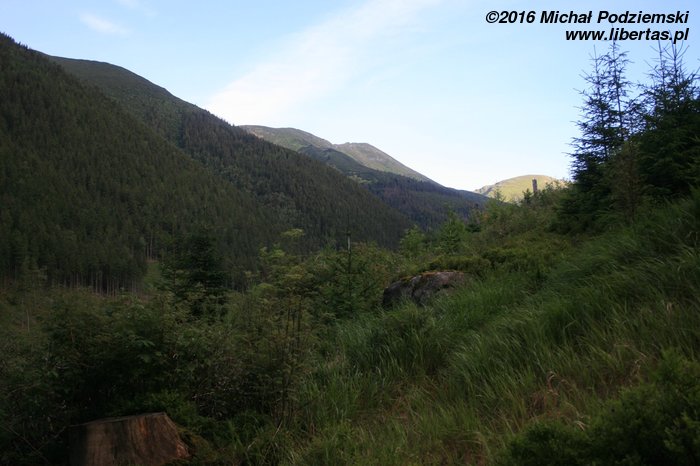 Dolina Wąska jest to wspólny spacerowy odcinek Doliny Jamnickiej i Doliny Raczkowej o długości dwóch kilometrów, który – idąc za niebieskimi oznaczeniami – powinniśmy pokonać w pół godziny. Po tym czasie dotrzemy na Niżną Łąkę, gdzie znajduje się rozstaje szlaków – nas teraz interesować będzie zielony. I tak rozpoczynamy powolne podejście, które stopniowo będzie nas wyprowadzać w coraz wyższe partie lasu.