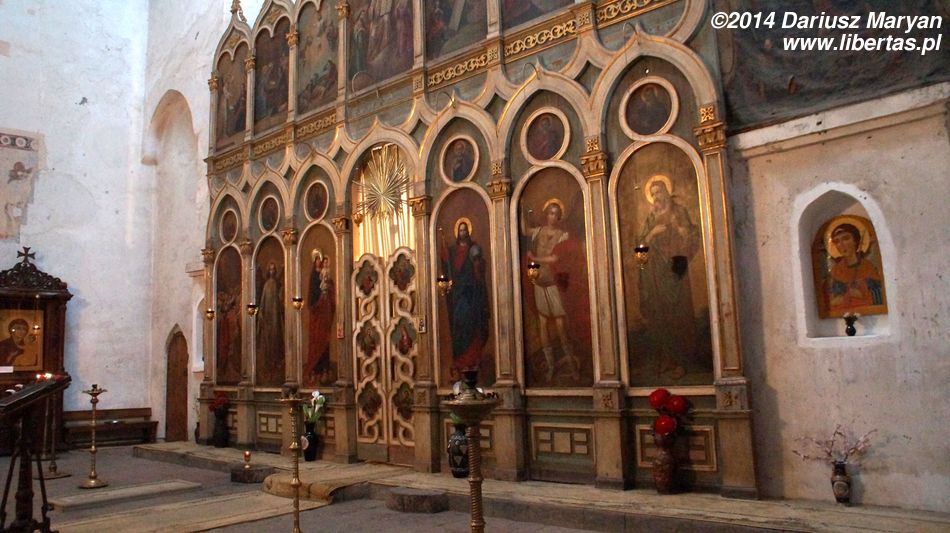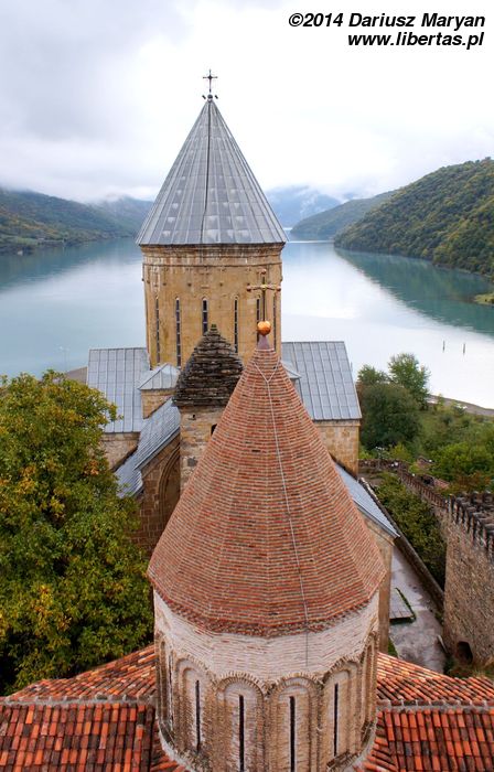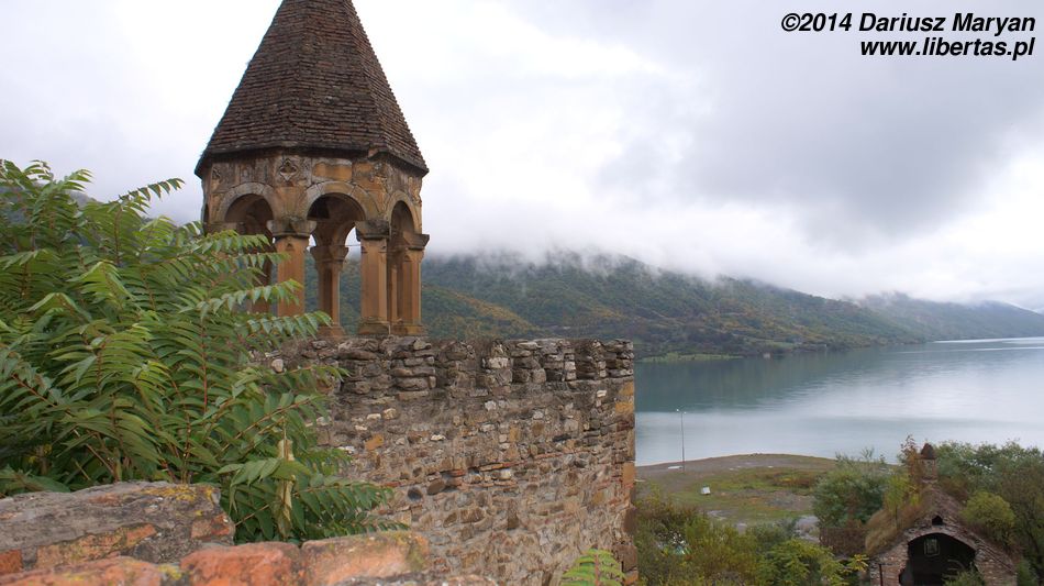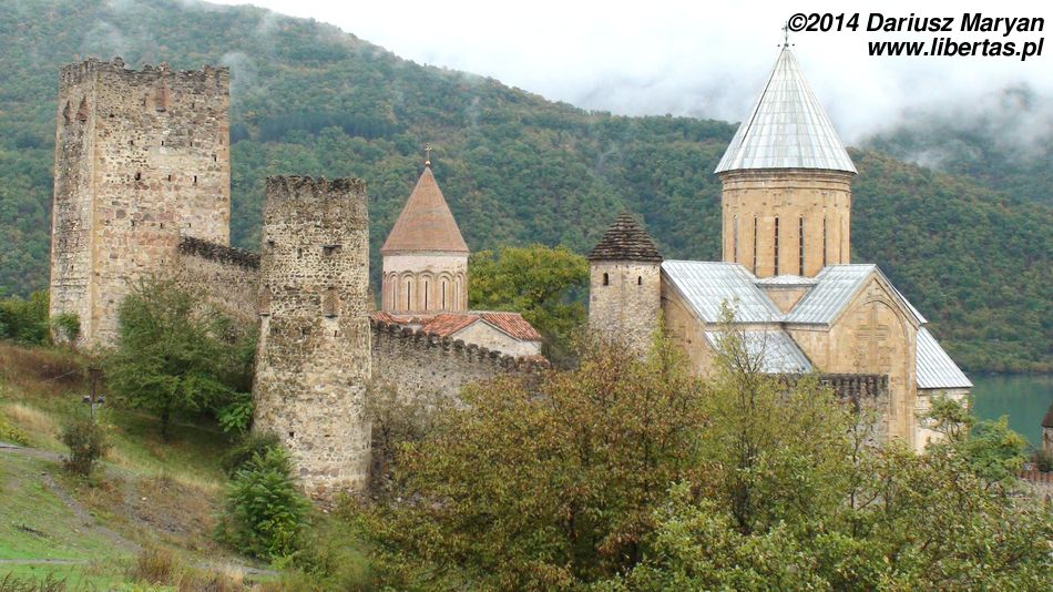 Pierwszą atrakcją na naszej drodze była twierdza Ananuri leżąca nad rzeką Aragwi. Znajduje się na zachodnim brzegu turkusowych wód Zbiornika Żinwalskiego w otoczeniu zalesionych wzniesień. Ananuri powstała w XVII wieku. Obecnie można podziwiać mury obronne, baszty i piękne (czynne) cerkwie. Na baszty można się wspinać, ze szczytu największej rozciąga się piękny widok na całą okolicę.