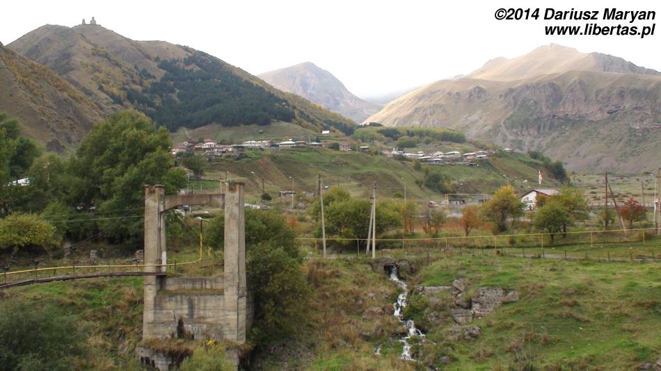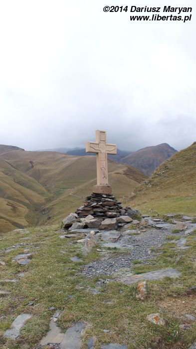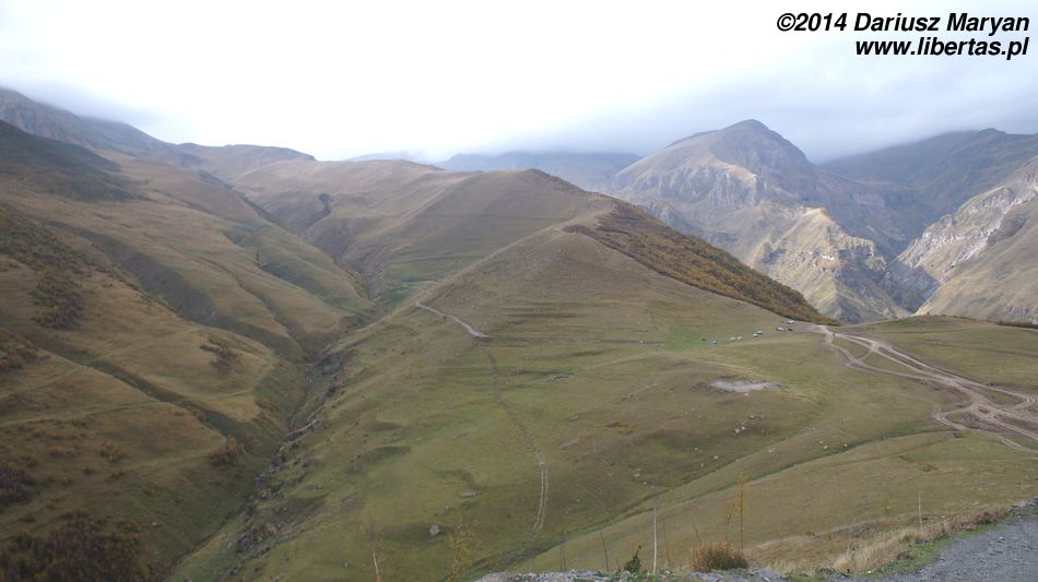 Następnie pośród nieprzeniknionych chmur przejechaliśmy przez Gudauri. Miasto jest chlubą Gruzinów. Jest to jeden z najsłynniejszych na Kaukazie ośrodków narciarskich. Droga w tym miejscu wije się serpentynami, by w końcu osiągnąć punkt szczytowy na Przełęczy Krzyżowej leżącej na wysokości 2379 m n.p.m.