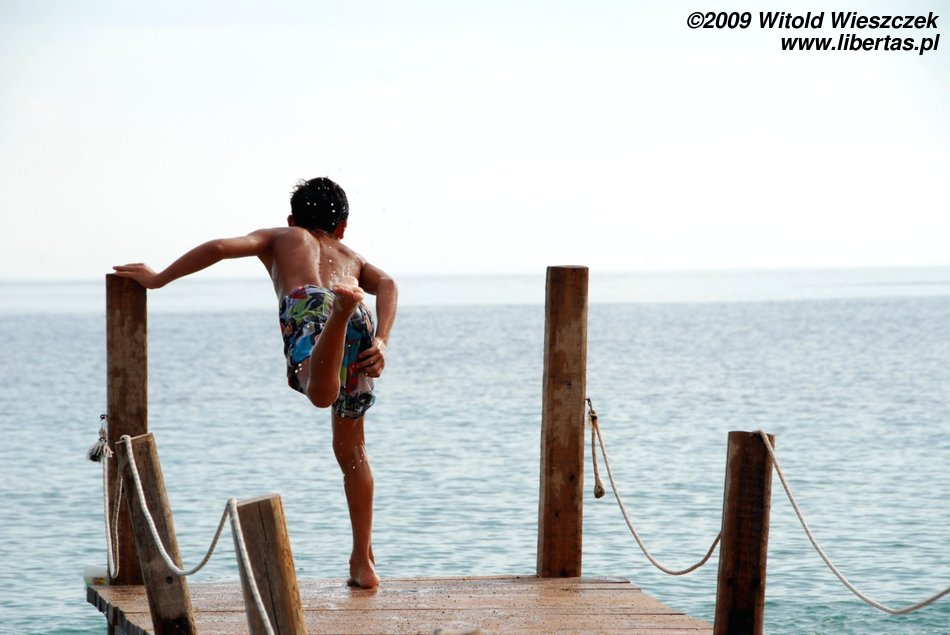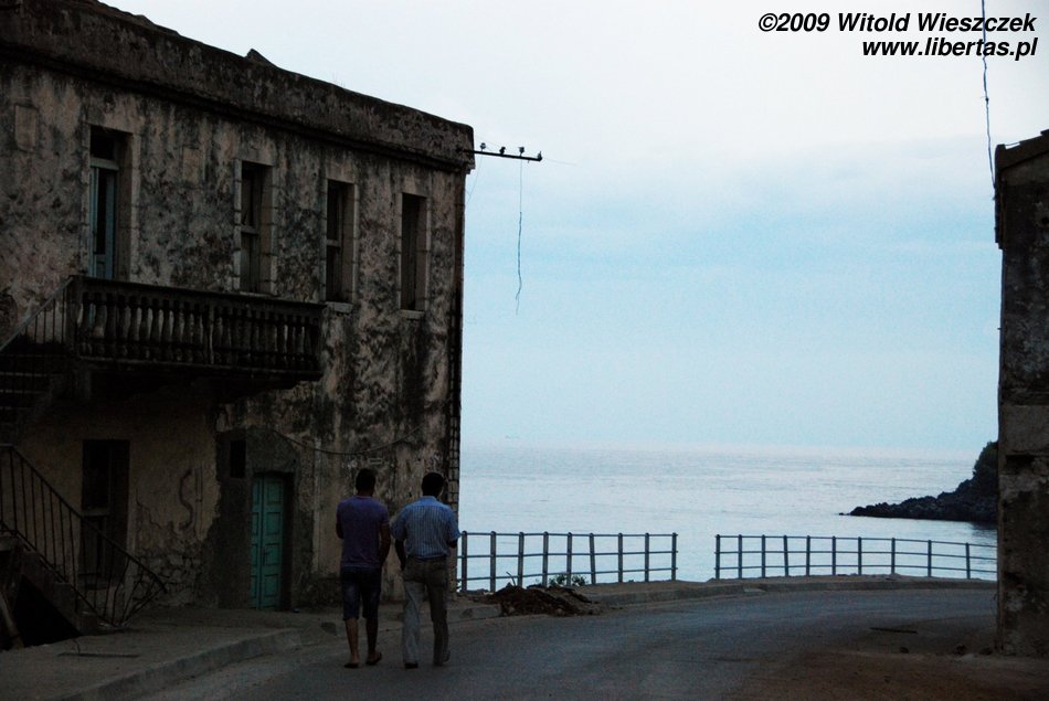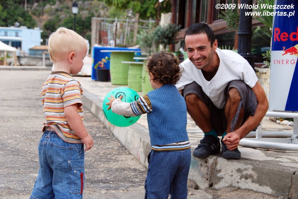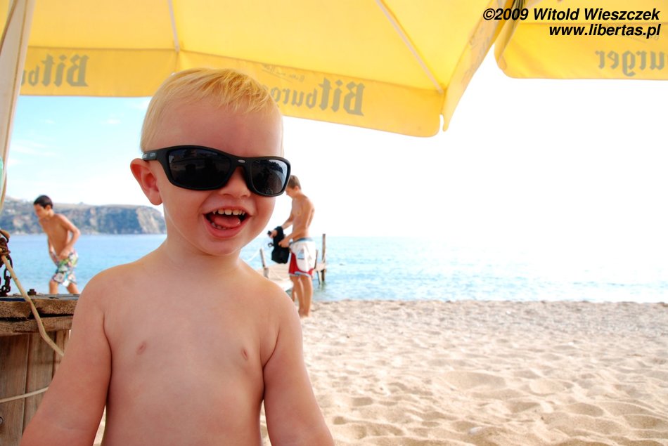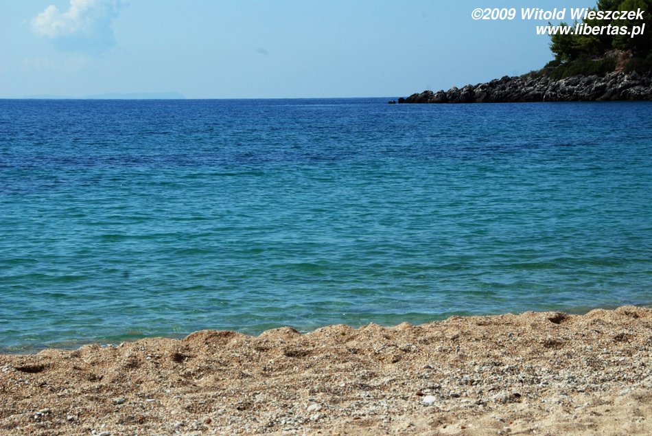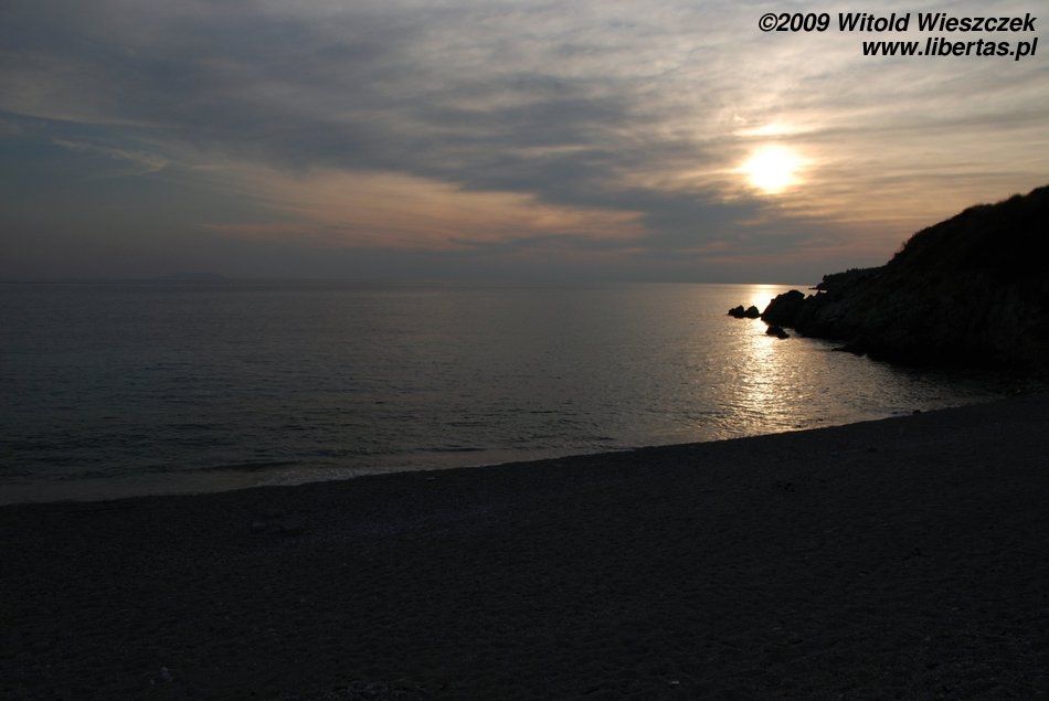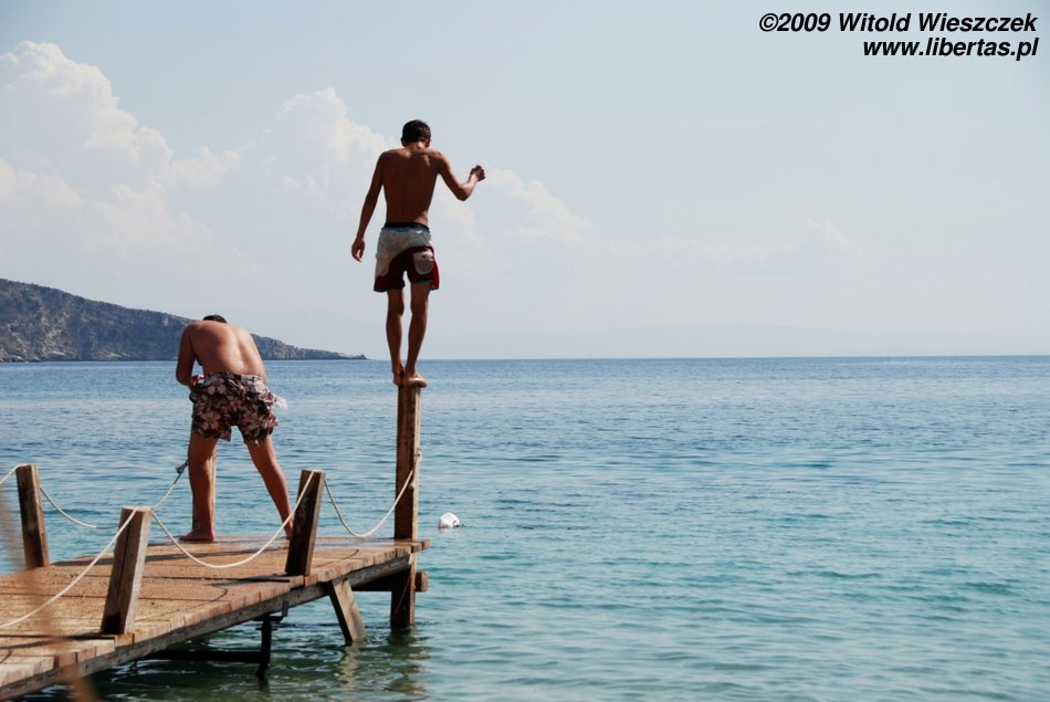 From time to time on the beach there strolls a man with a little child in a baby carrier. Some boys keep throwing each other to the water and take off each other’s underpants for a laugh. Two women lying nearby ask us where we are from. It turns out that the daughter of one of them studies in Cracow, at the Jagiellonian University. After a very nice conversation, from which we get to know that they belong to the Greek minority, they give us a few bunches of grapes and say goodbye with a smile.