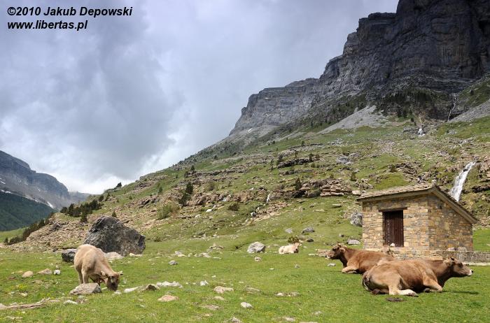 Po kilku następnych, bardzo burzowych dniach w Torla przyszedł czas, by zadecydować, jak zagospodarujemy resztę przeznaczonego na Pireneje czasu. Wyprawa na Monte Perdido stawała się coraz mniej prawdopodobna. Aura nas nie rozpieszczała. Dwukrotnie byliśmy w Circo de Soaso i ani razu z powodu kłębiących się chmur nie było nam dane zobaczyć szczytu. Nic dziwnego, że nazwano go „perdido”, czyli po hiszpańsku „zagubiony”. Musieliśmy opracować plan „B”. Kryjąc się kolejny dzień w naszym małym, oblewanym niemal nieustannie przez ściany deszczu namiocie, postanowiliśmy na przekór pogodzie ruszyć z miejsca i przenieść się do pobliskiej Doliny Bujaruelo, by stamtąd z kolei spróbować dotrzeć do Bramy Rolanda.