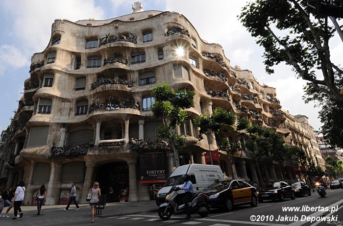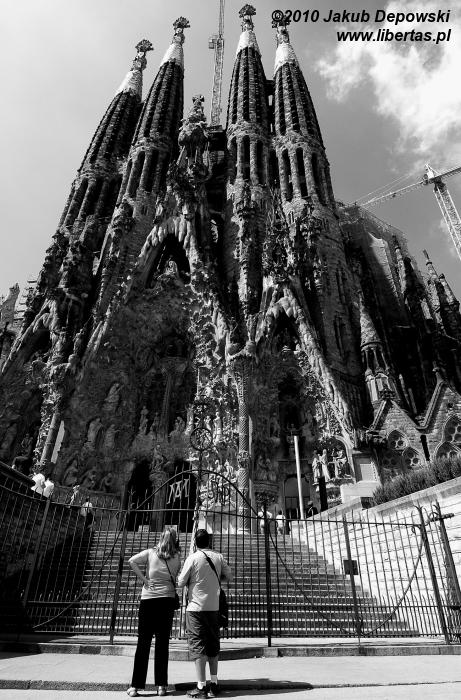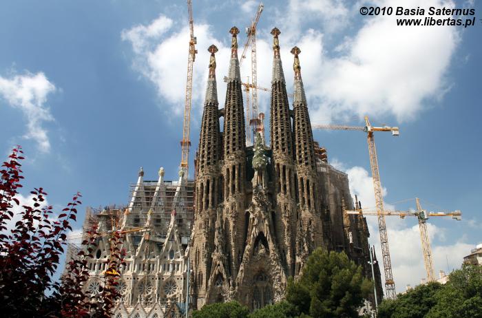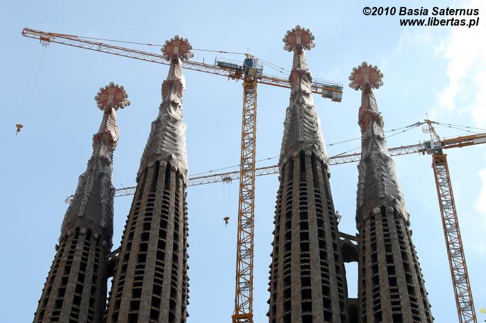 Już jutro opuszczamy Barcelonę, a co za tym idzie – chcemy dziś na długie godziny zapuścić się w głąb miasta, by zobaczyć jak najwięcej. Wlewamy w siebie kilka łyków kawy i bez zbędnej zwłoki opuszczamy hostel. Na zewnątrz cisza i spokój. Dochodzi dziesiąta, a Barcelona wciąż jeszcze śpi. Na początek ruszamy wzdłuż Ramblas – głównego w Barcelonie turystycznego deptaku łączącego Plaça Catalunya z wybrzeżem. O tej porze jest to zwykła wyludniona i cicha ulica, co akurat bardzo nam odpowiada. Nie musimy walczyć o miejsce, przepychać się i opędzać od ludzi, którzy na tysiąc sposobów próbują wyłudzić od nas gotówkę. Pierwszym przystankiem na naszej drodze jest Bouqeria – ogromna hala targowa zaopatrująca miasto we wszelkiego rodzaju produkty spożywcze. Wegetariański raj! Przy stoisku z kilkudziesięcioma gatunkami pomidorów przychodzi mi do głowy, że w Barcelonie chciałabym zostać już na zawsze. Bez problemu odnajdujemy się w tym oszałamiającym, pełnym przepychu gastronomicznym królestwie. Zaopatrzeni w zdrowe śniadanie wyruszamy w dalszą drogę, by przez następnych kilka godzin podążać śladami Gaudiego. Mijamy znany nam już Plaça Catalunya i kierujemy się na północ wzdłuż Passeig de Gracia. Naszą uwagę przykuwa najpierw rząd domów przypominających bajkową scenografię. To Manzana de la Discordia, co przetłumaczyć można jako “kwartał (albo też jabłko) niezgody”. Kompleks składa się z trzech sąsiadujących ze sobą budynków, które zaprojektowali trzej sławni hiszpańscy architekci: Lluís Domènech i Montaner, Josep Puig i Cadafalch oraz Gaudi. Pierwszy z obiektów to Casa Lleó Morera. Obok stoi, wyglądający jak chatka z „Jasia i Małgosi”, Casa Amaller. Co zabawne, ta „piernikowa” budowla powstała na zamówienie człowieka zajmującego się handlem czekoladą. Na końcu znajduje się Casa Batiló. Wyróżnia się charakterystyczną ceramiczną fasadą i balkonami przypominającymi maski, chociaż ja widzę tam raczej trupie czaszki. Kilkadziesiąt metrów od Manzana de la Discordia stoi Casa Mila, nazywana też La Pradera. Wystarczy rzut oka na fantazyjne kształty, kute balkony i brak linii prostych, by rozpoznać rękę Gaudiego. To największy budynek mieszkalny, jaki zaprojektował ten najsłynniejszy hiszpański architekt. Gmach Casa Mila jest częściowo otwarty dla zwiedzających, ale my bez zwłoki ruszamy dalej. Kiedy docieramy przed Sagrada Familia doznajemy lekkiego szoku. Wcześniej sądziliśmy, że pustki na ulicach i zamknięte w większości sklepy, to wynik przypadającego na dziś święta (Boże Ciało). Teraz jednak zmieniamy zdanie. Wygląda na to, że ulice wyludniły się, bo wszyscy przybyli tutaj. Sama nie wiem, co robi większe wrażenie – olbrzymia, niezwykle oryginalna budowla czy otaczająca ją, wijąca się w nieskończoność, gigantyczna kolejka chętnych zobaczyć Sagrada Familia od środka? Na szczęście nie mieliśmy w planach zwiedzania wnętrza. Jakoś udaje nam się przepchnąć przez okalający budynek tłum. Po drugiej stronie ulicy odnajdujemy mały skwer, z którego, jak się szybko przekonujemy, jest najlepszy widok na świątynię. Ciekawe, że nie spotykamy tam prawie nikogo. Kilkadziesiąt kolejnych minut przyglądamy się dziwacznej, otoczonej zewsząd przez dźwigi bryle. Sagrada Familia, której pełna nazwa brzmi Templo Expiatoro de la Sagrada Familia to aktualnie monstrualny plac budowy. Niesamowite, że zaczęto wznosić ją w 1882 roku, a przewidywany czas jej ukończenia to dopiero rok 2041! Gaudi przez większą część swojego życia, aż do śmierci w 1926 roku, zaangażowany był w jej budowę, a mimo to dożył zaledwie chwili, gdy ukończona była tylko jedna fasada. Rozmawiając o tym pstrykamy kilka niedbałych zdjęć i po krótkiej sjeście udajemy się z powrotem w stronę Barri Gòtic.