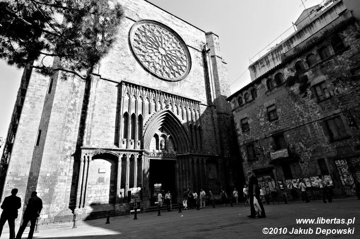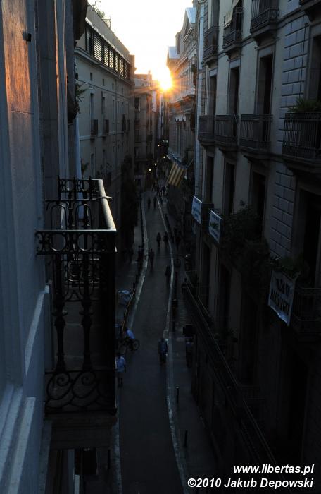 Z lotniska (Aeropuerto de Barcelona, T2) do oddalonego o około 15 kilometrów centrum Barcelony docieramy bez najmniejszych problemów. Skorzystawszy z jednego z licznych, kursujących co kilka minut autobusów, już po pół godzinie wysiadamy na Plaça Catalunya i uzbrojeni w mapę ruszamy przed siebie. Do naszego hostelu nie powinno być daleko. Z dość sporymi plecakami, które w górach zapewnić nam mają samowystarczalność (mamy ze sobą m.in. namiot, palnik, śpiwory, całą masę niezbędnych drobiazgów a nawet raki), przeciskamy się ramię w ramię z tłumem turystów przez wąskie uliczki Barri Gòtic. To średniowieczne centrum Barcelony mimo, że zostało częściowo przebudowywane, zachowało swój historyczny charakter i niezwykły klimat. Spacer trwa zaledwie kilka minut, a mijamy niezliczoną wręcz ilość uroczych zaułków, przykuwających uwagę budynków oraz kilka zabytków, których bliższe poznanie mamy dopiero w planach. W połowie Carrer Avinyó odnajdujemy poszukiwany adres. Naszą pierwszą w Hiszpanii bazą jest Hostal Quartier Gothic. Skusił nas swoją lokalizacją w samym sercu starego miasta i względnie niską, jak na stolicę Katalonii, ceną (około 40 € za dwuosobowy pokój). By nie tracić zbyt dużo cennego czasu, noclegi tym razem zarezerwowaliśmy wcześniej przez Internet. Hostel mieści się na dwóch piętrach okazałej kamienicy. Kiedy stajemy przed recepcją, okazuje się, że przechodzi właśnie gruntowny remont. Później odkryjemy, że to w Barcelonie bardzo aktualny trend – rozkopane chodniki, wszechobecne rusztowania itp., to tutaj normalka. Całe szczęście nasz pokoik prace remontowe ma już za sobą. Jego przestrzeń bardzo przypada nam do gustu. Trochę ciasno, ale za to przytulnie. Zresztą i tak nie mamy zamiaru spędzać w nim zbyt wiele czasu. Gdybyśmy jednak chcieli przyjrzeć się życiu stolicy Katalonii nie ruszając się z miejsca, nasze lokum posiada malutki balkon. Stojąc na nim wydaje nam się, iż moglibyśmy podać rękę sąsiadowi z naprzeciwka – tak wąskie są ulice Barri Gòtic. Z góry przyglądamy się okolicy i w pełni doceniamy lokalizację naszego hostelu. Wygląda na to, że będziemy w samym centrum miejskich wydarzeń.