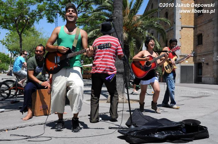 Późnym popołudniem wybieramy się do Port Vell. Przemierzając to nowoczesne i tętniące życiem nabrzeże nie możemy uwierzyć, że jeszcze nie tak dawno – przed Olimpiadą w 1992 roku – znajdowała się tutaj zrujnowana przemysłowa część miasta. Wrażenie robi na nas zwłaszcza ogromna przystań wypełniona po brzegi niezliczoną wręcz liczbą mniej bądź bardziej luksusowych jachtów i łodzi. Przez chwilę obserwujemy toczące się na ich bogatych pokładach życie towarzyskie, ale nasza uwaga szybko wybiega ku obiektom bardziej plebejskim – nadmorskie deptaki, podobnie zresztą jak wszystkie co ciekawsze barcelońskie zaułki, stają się areną dla chcących pochwalić się swoim repertuarem, a przy okazji zarobić trochę euro na nocne rozrywki, hiszpańskich muzyków. Następne godziny spędzamy przysłuchując się wielu ulicznym formacjom i nie możemy się nadziwić prezentowanemu przez nie, niemal bez wyjątku, niesamowicie wysokiemu poziomowi. Nie wiem, czy barcelońskie władze urządzają jakieś specjalne castingi i na ulicach pozwalają grać tylko najzdolniejszym artystom, ale naprawdę na to wygląda. Cudownie rozkołysani długo błąkamy się po mieście wabieni przez kolejne muzyczne atrakcje. Do hostelu wracamy grubo po północy.