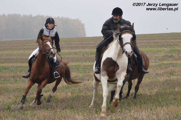 Na zakończenie sezonu jeździeckiego dzieci i młodzieży w podkętrzyńskich Kątach urządza się rokrocznie Święto Hubertusa. Żeby nie zmagać się zbyt dramatycznie z pogodą, dzień celebracji zwykle ustala się w weekend poprzedzający imieniny Huberta przypadające na 3 listopada. W tym roku Szkółka Jeździecka pani Agnieszki Frankowskiej (jeszcze do sierpnia tego roku – panny Waraksy) Święto Jeźdźców obchodziła na prawie dwa tygodnie wcześniej. Tradycyjna (Wielka Brytania, II Rzeczpospolita za Mościckiego) gonitwa za lisem rozpoczęła się metaforycznie w południe na polach pomiędzy Kątami a Szczeciniakiem. Pochód samochodów, pieszych i koni zatrzymał się przy wbitych w ziemię palikach oznaczających biało-czerwoną taśmą granice zawodów. Kętrzyńscy, i nie tylko, filmowcy i fotograficy po zawodzie, po przyjaźni oraz po rodzinie z poczucia nie tyle obowiązku, ale sympatii w stosunku do uczestników, zanurzyli buty po kostki w miękkim błocie, soboty 21 października, po kilkudniowych opadach. Buty dorównały wilgocią do reszty odzieży, która zdążyła nasiąknąć mazurską mgłą i mżawką. Zatem nie tylko pogoń za zawieszonym na lewym ramieniu jeźdźca rudym lisem tworzyła związek z Wielką Brytanią. Tego dnia mieliśmy absolutnie angielską pogodę. Frazes, że mimo tego wszyscy bawili się znakomicie, jest w pełni uzasadniony.