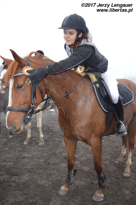 Tym razem drobne zmiany. Mianowicie, żeby ustrzec się dość powszedniego w Kątach wietrzyska, gastronomia przygotowywana była w otwartej przyczepie ogromnej ciężarówki. Ilość termosów, potraw i ciast zdumiewa z roku na rok. Przypuszczam, że to rodzice młodych jeźdźców nie pozwolili sobie na przyjazd z pustymi rękoma. Każda kolejna konkurencja przerywana była czasem na posiłek. Gorące zupy, bigos, pieczenie kiełbasek. A zatem mała gonitwa, szukanie lisa, nowość, czyli skakanie przez opony, i na koniec przebieranki. Do tego puchary, nagrody, dyplomy, uśmiechy, wspólne zdjęcia i… porządki.