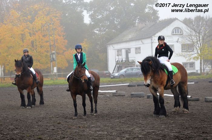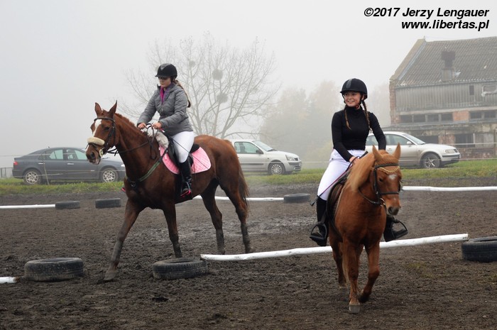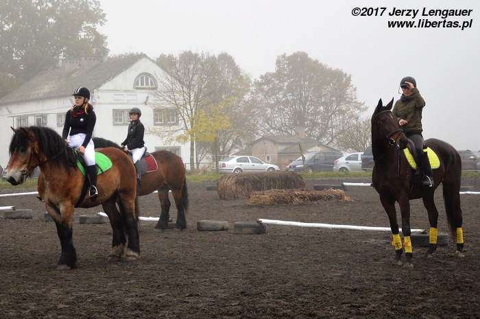 Kawalkada przeniosła się na miejsce celebracji, gdzie parkur, stajnia, łąki. Nieco się tego dnia tam zmieniło, chociaż mnóstwo tych samych twarzy, co każdego roku. Oczywiście pani Agnieszka, jej mąż pan Artur Frankowski, Wojtek Caruk, jak zawsze w roli wodzireja, pani Ania Opala, pan Ariel Szumiński, właściciel terenu – pan Czarek, uwijający się przy ognisku i zapewniający gastronomiczną logistykę pan Jarek Prokop, pani Kasia Kustra – sołtysowa Skierek, pan Arek Kustra i mnóstwo dziewcząt, które podobno od szóstej nad ranem przygotowywały konie, stroje, siodła, uprząż.