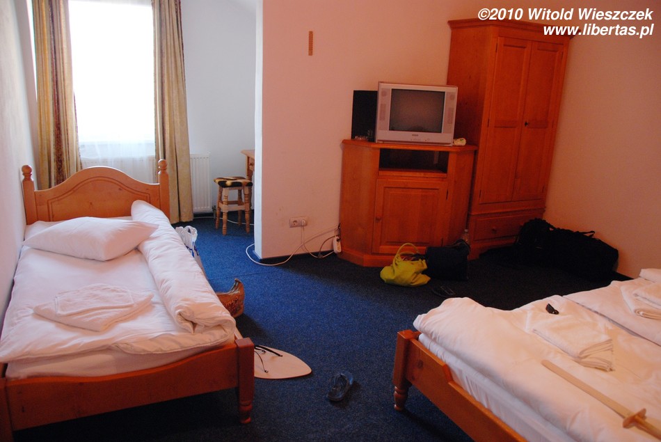 W Hunedoarze udało nam się znaleźć tylko jeden hotel, trzygwiazdkowy Hotel Maier z restauracją. Za pokój z trzema łóżkami zapłaciliśmy 170 lei. Hotel bardzo przyjemny, ale droższy niż przewidywały nasze plany, więc jeśli ktoś zna jakieś bardziej ekonomiczne rozwiązanie kwestii noclegów w rejonie Hunedoary, to proszę o informację.