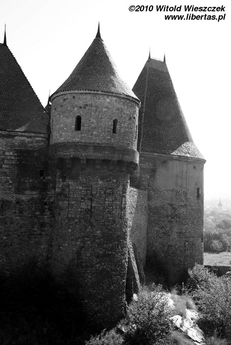 Pierwsze pisemne wzmianki o mieście, zwanym wtedy Hungnod, pochodzą z 1265 roku i wiemy z nich, że już wtedy istniał tutaj niewielki zamek. W XIV wieku Hunedoara przeszła w ręce Andegawenów, a w 1386 roku, po śmierci ostatniego z nich – króla Karola III – stała się własnością króla Zygmunta Luksemburskiego, który w miejscu starego zamku zbudował nową, gotycką warownię. W 1409 roku, w uznaniu zasług dla węgierskiej korony Zygmunt Luksemburski przekazał zamek wraz z otaczającymi go dobrami rumuńskiemu szlachcicowi Vojkowi Hunyadyemu. Jedna z wersji mówi, że węgierskiej koronie zasłużyła się raczej żona Vojka, która urodziła Zygmuntowi nieślubnego syna – Janka. Jak było naprawdę – nie wiem. Dodam tylko, że były to czasy walk z Turkami, a Hunedoara zasłynęła między innymi tym, że produkowano tutaj broń, zresztą już za czasów rzymskich okolica słynęła z produkcji żelaza.