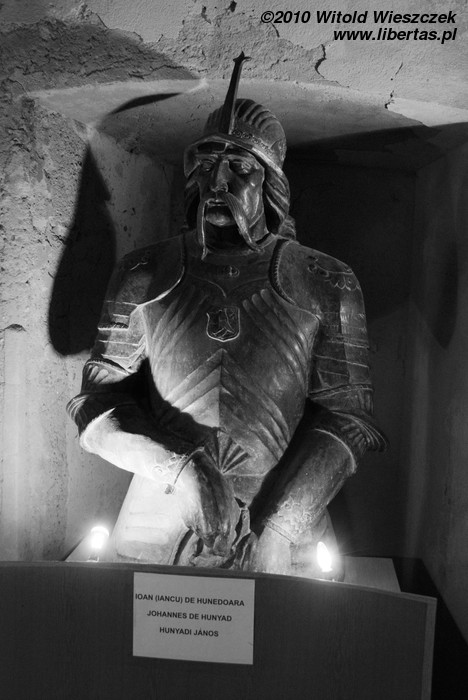 Jak już pisałem – na początku XV wieku zamek w Hunedoarze trafił w ręce Vojka. Legenda mówi, że jego żona Elżbieta, szlachcianka z Hunedoary, miała romans z królem Zygmuntem Luksemburskim. Efektem tej niewinnej przygody była ciąża, a jej sprawca, aby uchronić Elżbietę przed niesławą, wydał ją za jednego ze swoich rycerzy. Elżbiecie miał dać przy tym złoty pierścień dla swojego nieślubnego syna, by kiedyś móc go po nim rozpoznać. To się akurat trochę nie trzyma kupy, bo znając nazwisko syna obyłby się i bez pierścienia, no ale w końcu legenda nie może być nigdy całkiem prawdziwa. Wracając do naszej historii, gdy Jan z Hunedoary trochę podrósł, wybrał się w podróż, podczas której zatrzymał się w jakiejś przypadkowej oberży. Podczas posiłku z jakiegoś niewyjaśnionego powodu postanowił zdjąć pierścień z palca. Świecidełko zwabiło kruka, który podleciał i ukradł pierścień Jankowi. Ten niewiele myśląc szybko sięgnął po łuk i zestrzelił latającego złodziejaszka.