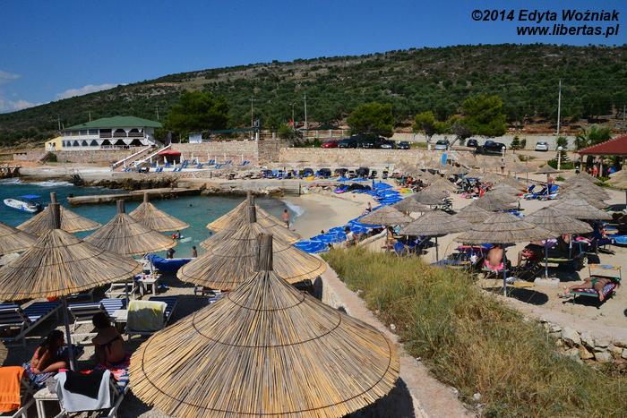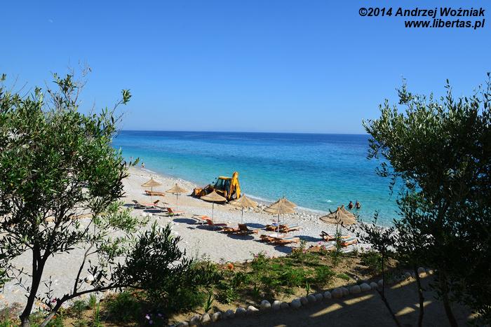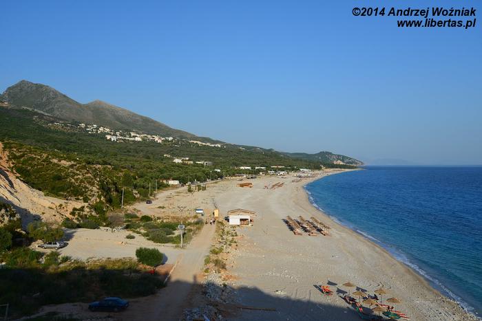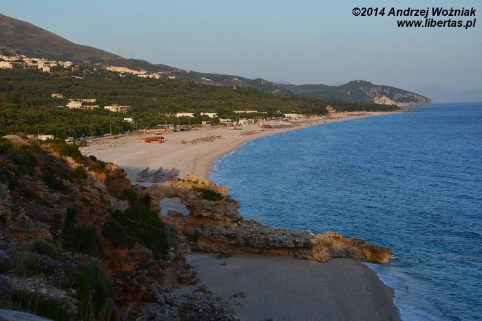 Pierwszym celem naszych odwiedzin stało się Dhermi miasteczko turystyczne nad morzem, położone 24 km na południe od Vlory, w południowej części wybrzeża. Już wcześniej czytałam w albańskich przewodnikach turystycznych, że jest to rejon przepięknych plaż i ta informacja potwierdziła się w 100%. Plaże są szerokie, długie, oddzielone od siebie pięknymi formacjami skalnymi, piaszczyste lub żwirowe, piękna, krystalicznie czysta woda. Raj na ziemi.