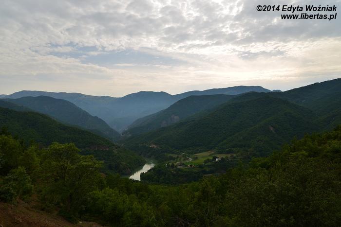 Po odpoczynku ruszyliśmy dalej w drogę do Koman. Tu nawierzchnia jest już zdecydowanie gorsza i pogarsza się wraz z kolejnymi kilometrami. Jest jednak na tyle dobra, że nasza Toyota Avensis pokonała ją bez najmniejszych przeszkód. Wszystko jednak wynagradzają piękne widoki. Rozlewiska jezior i szczyty górskie. Co chwila zatrzymywaliśmy się, żeby zrobić kolejne zdjęcia.