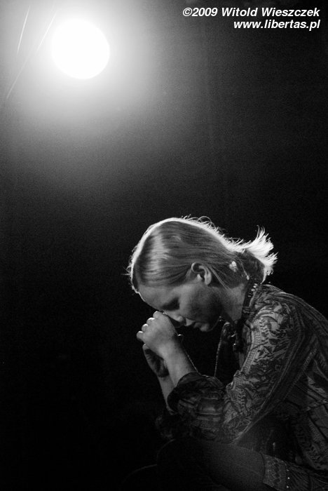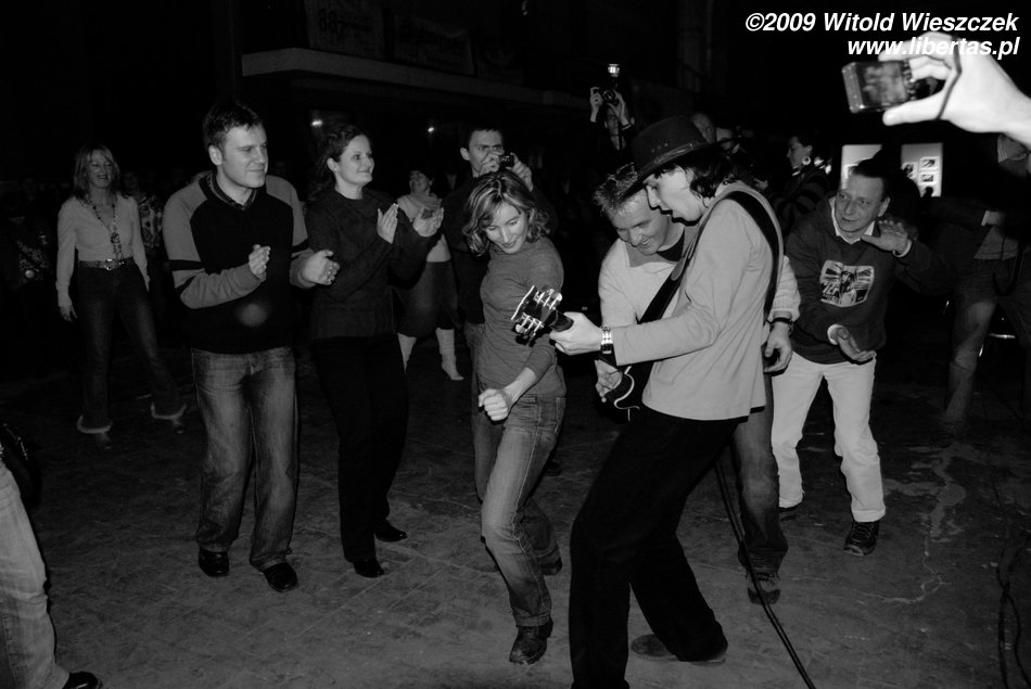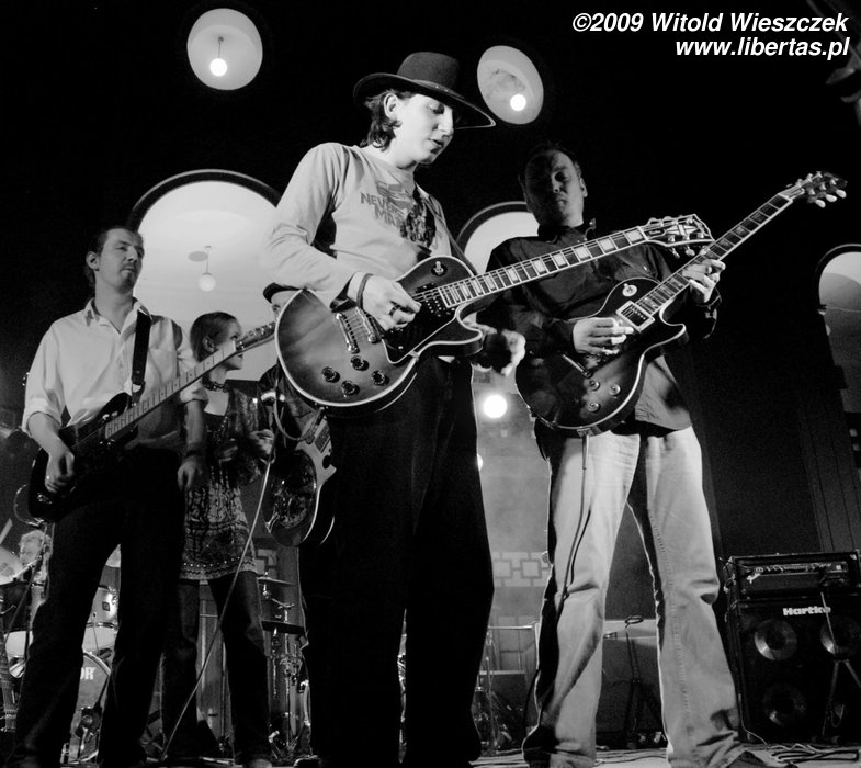 Ale Siódma w nocy to nie tylko wirtuozeria i blues w najlepszym wykonaniu, to również show! Kajtek gra na gitarze, trzymając ją za głową, pod nogą, skacząc i biegając po scenie! Gra na niej wszystkim, co mu wpadnie w ręce, widziałem już, jak grał smyczkiem, butelką po piwie, czy pałeczką od perkusji. Do tego świetny, wręcz fizyczny kontakt z publicznością, np. kiedy nagle zeskakuje ze sceny i tańczy z przypadkową dziewczyną.