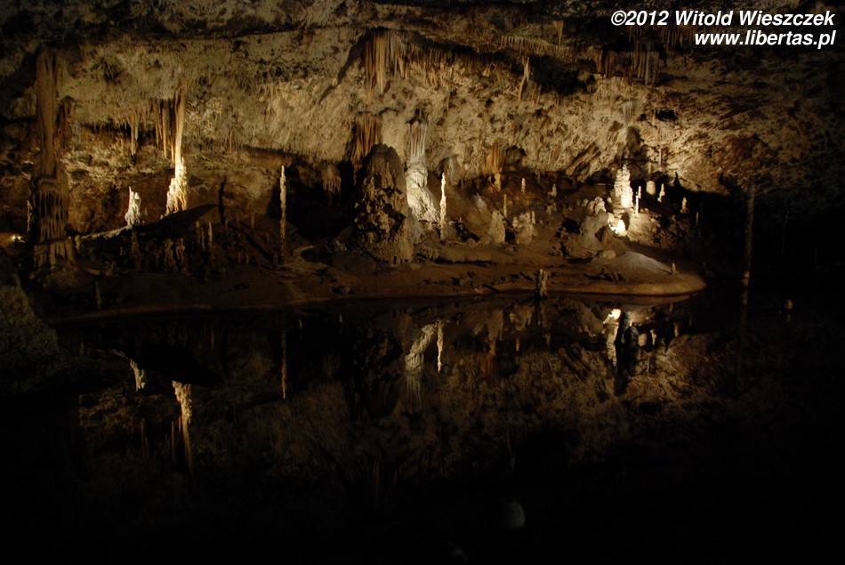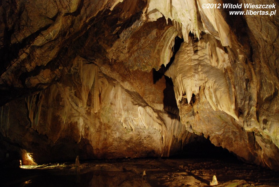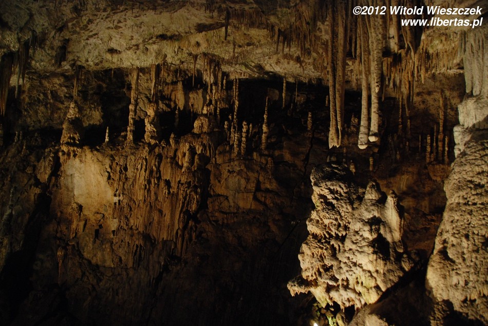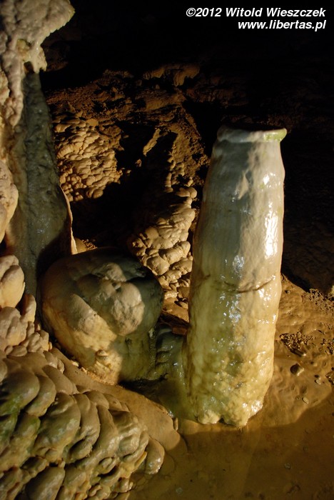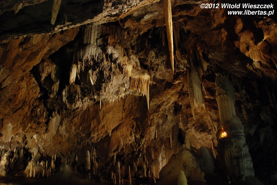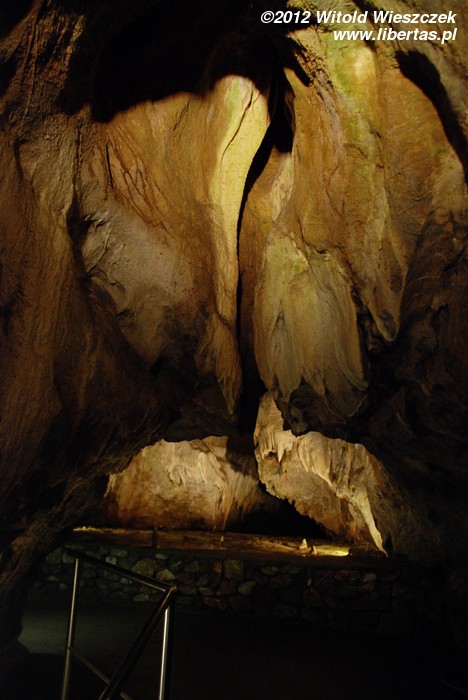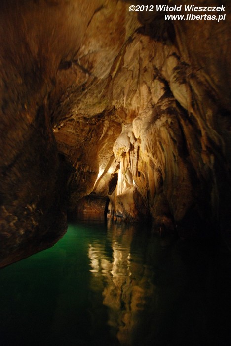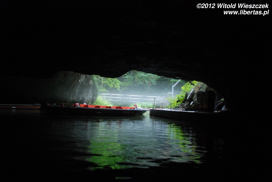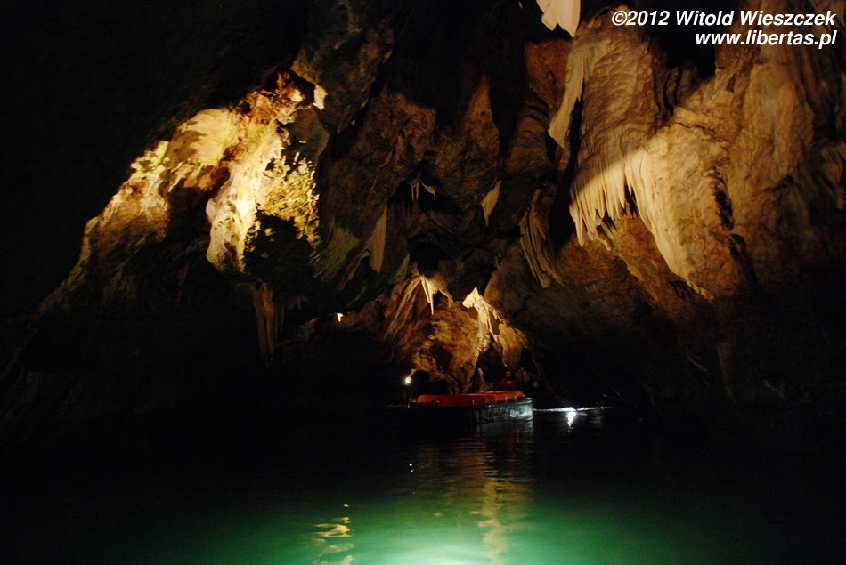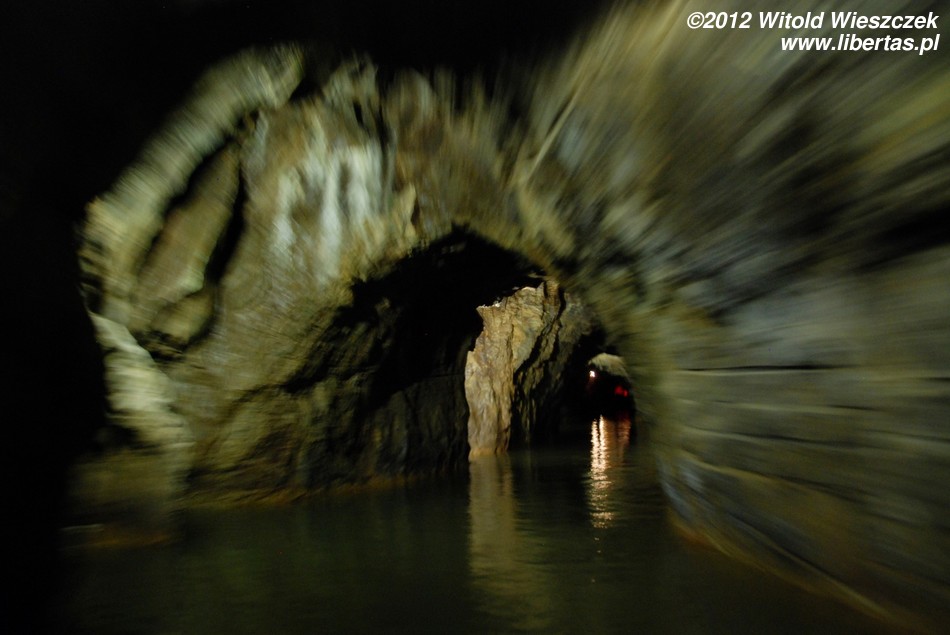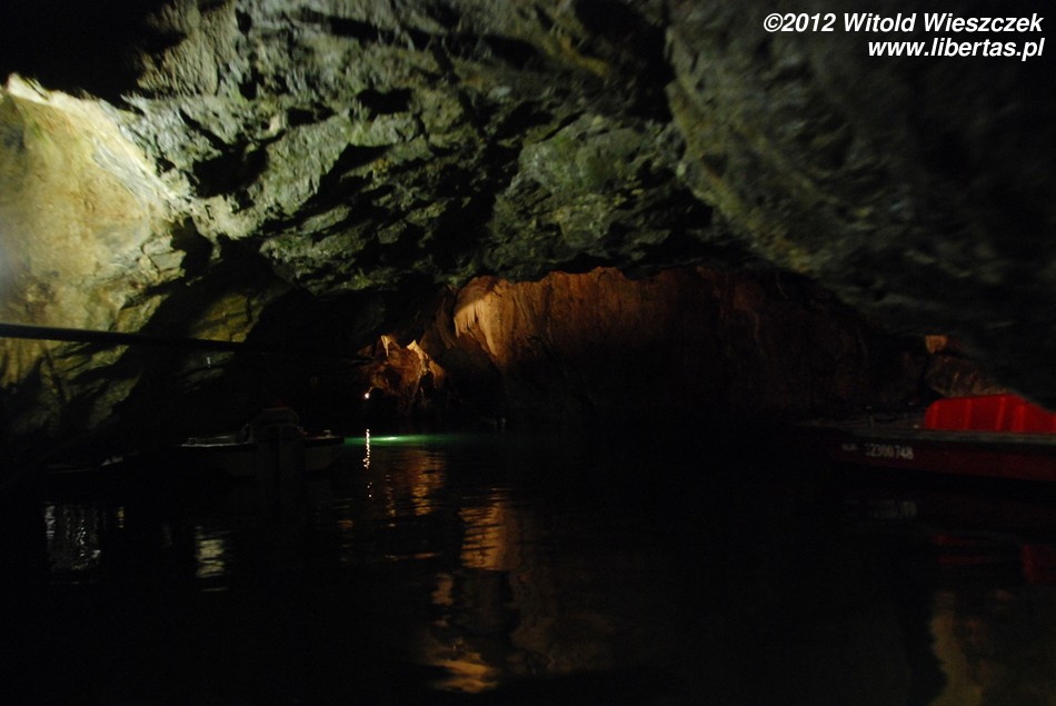 Następnie schodzimy do niewielkiej przystani, gdzie zaczyna się spływ łódkami po płynących przez jaskinię wodach rzeki Punkwi. Ściany korytarzy obfitują w różne wydrążenia, podświetlana woda mieni się zielonkawą barwą, a tu i ówdzie ze stropu zwisa jakiś interesujący naciek. Zresztą strop momentami jest bardzo nisko, więc podziwiając jaskinię, trzeba uważać, żeby nie nabić sobie guza. No, chyba że mamy ochotę podziwiać również gwiazdy.