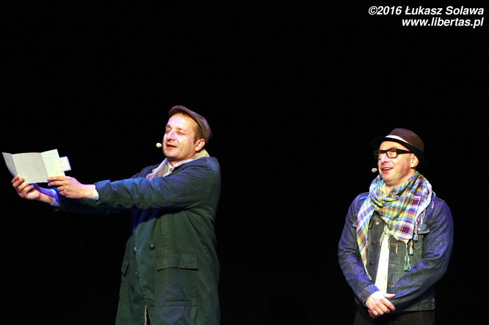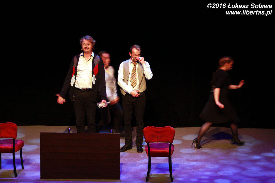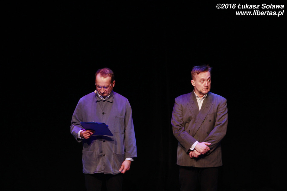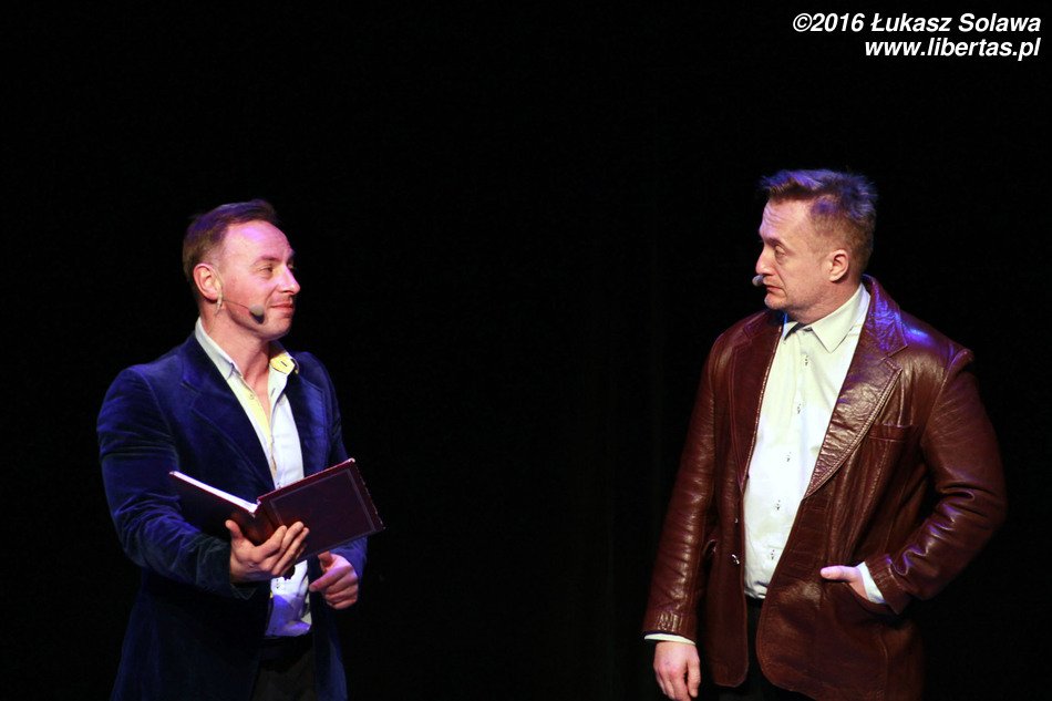 Widownia bawiła się przednio, więc oczywistością było, że nie obędzie się bez bisu. Pierwszym bisowym szlagierem było „Biuro matrymonialne”. Skecz odegrany przez Cieślaka i Zbiecia był oczywiście zabawny, ale moim zdaniem czegoś w nim brakło. Po chwili dotarło do mnie czego, a w zasadzie kogo. Zabrakło Roberta Górskiego. Po odejściu z Kabaretu Moralnego Niepokoju Katarzyny Pakosińskiej w 2011 roku wiele osób wieszczyło koniec tego kabaretu. Po mniej lub bardziej udanych eksperymentach z różnymi artystkami, grupa przetrwała. Według mnie śmiertelnym ciosem dla Niepokojących Moralnie mogłoby być chyba tylko odejście Górskiego. Podczas skeczu, w którym go zabrakło, uświadomiłem sobie, że to on jest tym kabaretem (swoją drogą zauważyliście może, że momentami lider zespołu swoją mimiką i postawą, przypomina Louisa de Funèsa?). Niezwykle entuzjastycznie natomiast został przyjęty ostatni numer tego wieczoru zaczynający się słowami: „Dzień dobry, proszę pana, chciałem kupić drzwi...” Na te słowa publiczność niemal zachłysnęła się śmiechem. Duet Robert Górski – Mikołaj Cieślak, to jeden z najlepiej dobranych w historii polskiego kabaretu. Panowie doskonale się uzupełniają. Nie wiem, jakie są codzienne relacje tych dwóch kabareciarzy, ale na scenie są oni niemalże jak stare dobre małżeństwo – zgrani i rozumiejący się bez słów.