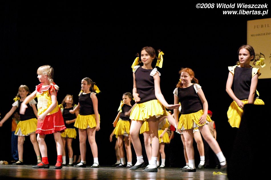 W tym roku Młodzieżowy Dom Kultury nr 1 obchodzi okrągły jubileusz! Z tej okazji jako pierwsi na deskach Teatru Małego w Tychach pojawili się podopieczni pani Marii Ławniczek, którzy na powitanie odtańczyli Poloneza. Dodam, że w ich wykonaniu wyglądał o wiele lepiej, niż ten, którego pamiętam ze studniówki! Następnie miała miejsce o wiele zbyt dłuuuuga część oficjalna, na której co ciekawe bardzo mało miejsca poświęcono tym, którym owe podziękowania najbardziej się należały.