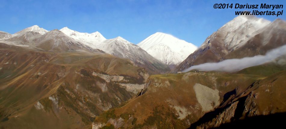 Pierwszy etap podróży przebiegł bardzo sprawnie, maszrutka do Tbilisi odjechała z samego rana. Tym razem piękna pogoda pozwoliła nam podziwiać widoki po drodze. Niestety jechaliśmy rejsowym kursem i nie zatrzymywaliśmy się nigdzie po drodze. Pozostało nam zrobić kilka fotek z busika.