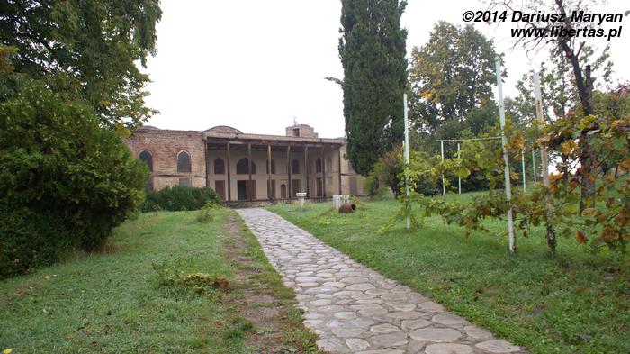 Ostatnim punktem naszego szybkiego zwiedzania Kachetii była Carska Twierdza z XVIII wieku oraz pałac króla Irakliusza II samym centrum Telawi. Przed murami twierdzy można podziwiać jego okazały pomnik. Forteca otoczona jest wysokimi murami z basztami oraz dwoma wejściami od strony sporego, przylegającego do nich placu. Wewnątrz poza pałacem można zobaczyć również dwie cerkwie i łaźnię. Pałac królewski Batoniscyche został zbudowany w stylu perskim przez króla Arczila. Wewnątrz pałacu miało znajdować się muzeum etnograficzne, ale kiedy tam trafiliśmy, okazało się, że obiekt jest właśnie remontowany i nie wolno wchodzić do środka. Jednak na wieść, że jesteśmy z Polski, pozwolono nam na chwilkę zerknąć. Wnętrza pałacu były puste, jeżeli cokolwiek się tam znajdowało, musiało być przeniesione w inne miejsce.
