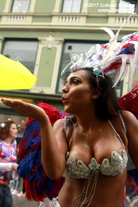 Karnawał w czerwcu? Czemu nie. W krajach skandynawskich to dość popularna praktyka. No bo wyobrażacie sobie skąpo odziane tancerki na ulicach Oslo czy Sztokholmu dajmy na to w lutym, gdy słupek rtęci schodzi dużo poniżej zera, a słońce nie raczy wychylić się ani na moment zza stalowych chmur? Dlatego w tamtych rejonach parady karnawałowe odbywają się latem.