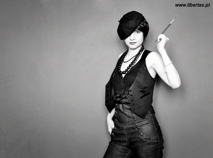 Spojrzałam na nią. Stała tam obok mnie w szarej koszulce i czarnej spódniczce. Jej włosy były schludnie zaczesane na bok, jedynie krótkie końcówki sterczały delikatnie, dodając objętości ślicznej, niewielkiej główce. Na nogach miała zamszowe sandały, a na kostce srebrną bransoletkę. Pośród tej całej bandy bliżej nieokreślonych stworów wyglądała tak normalnie i przyjaźnie, że na mojej twarzy mimowolnie pojawił się uśmiech.