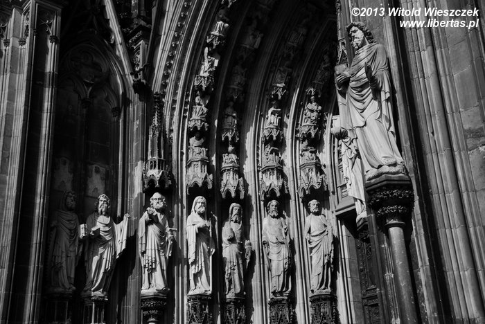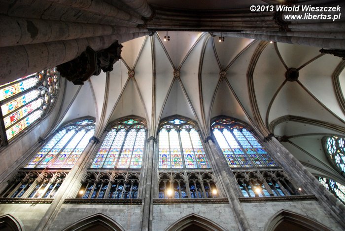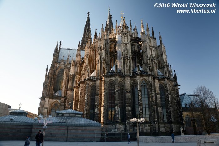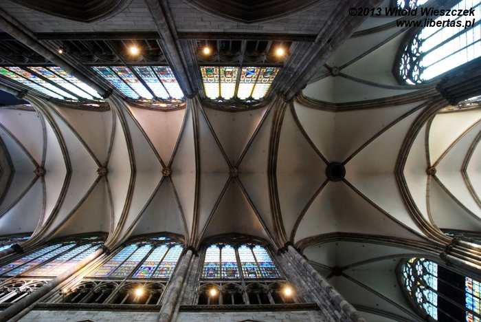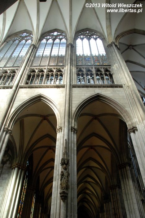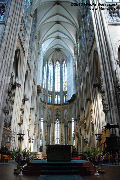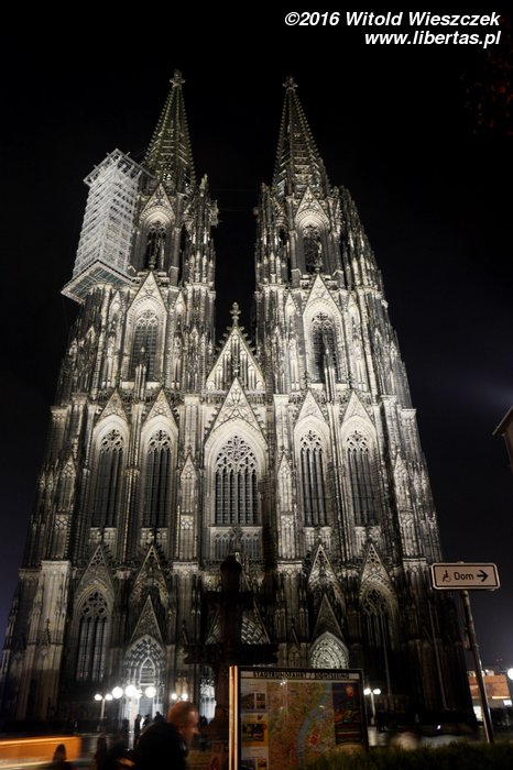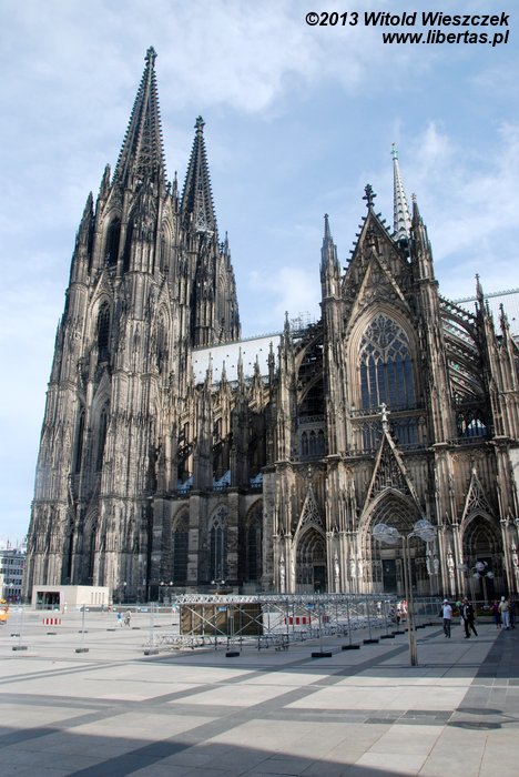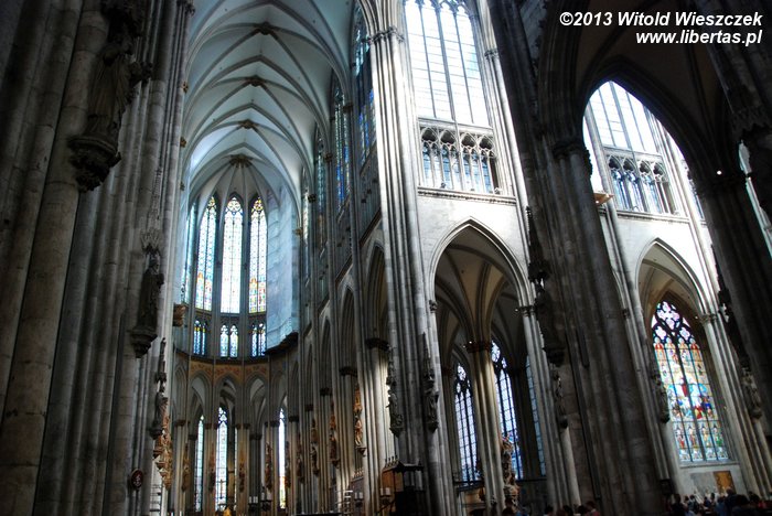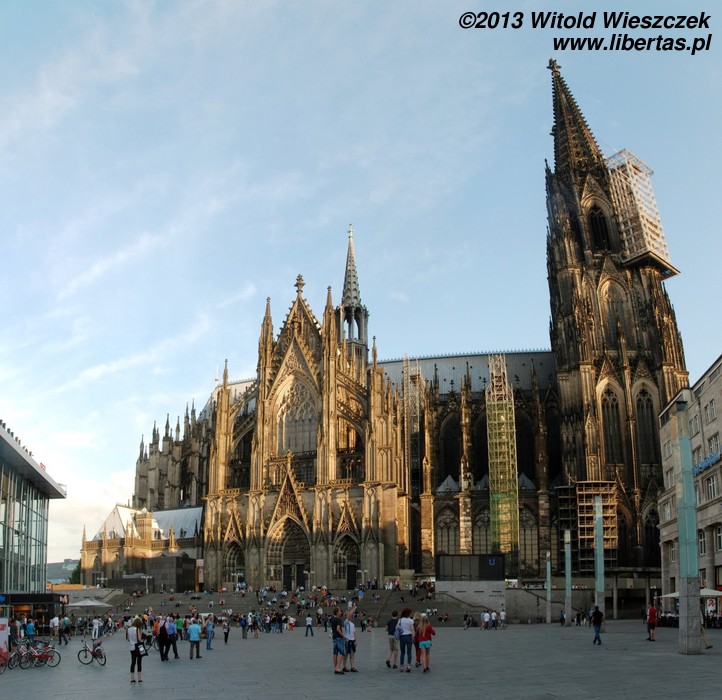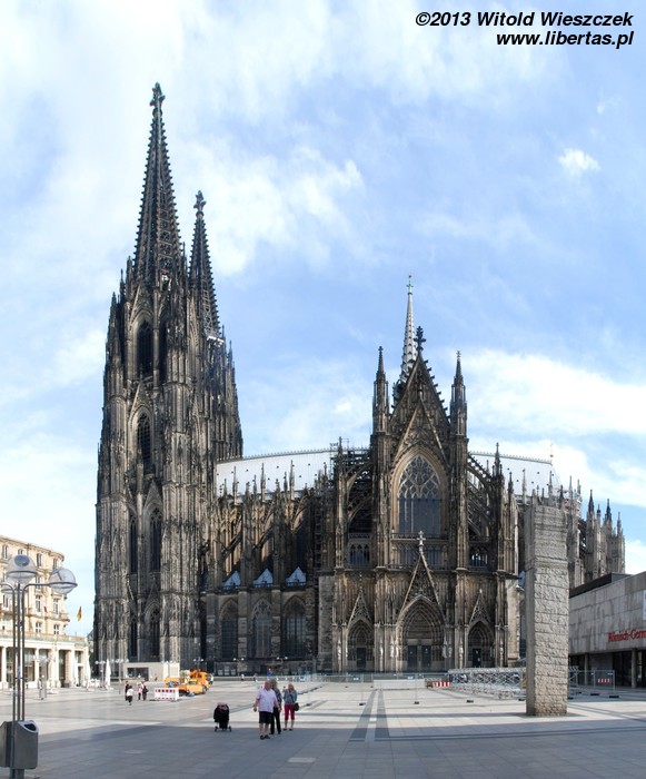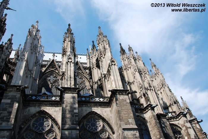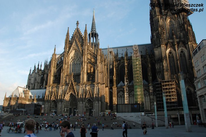 Katedra Świętego Piotra i Najświętszej Marii Panny w Kolonii (Kölner Dom) ma 144 metry długości i 86 metrów szerokości, a jej strzeliste wieże wznoszą się na wysokość 157 metrów, co w chwili ukończenia prac w 1880 roku czyniło z niej najwyższą budowlę świata! Tym mianem cieszyła się tylko 10 lat, ale do dzisiaj pozostaje drugą co do wysokości najwyższą gotycką świątynią na świecie (na pierwszym miejscu jest ukończona w 1890 roku katedra w Ulm, której wieża mierzy 161,5 metra).