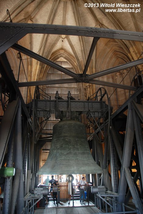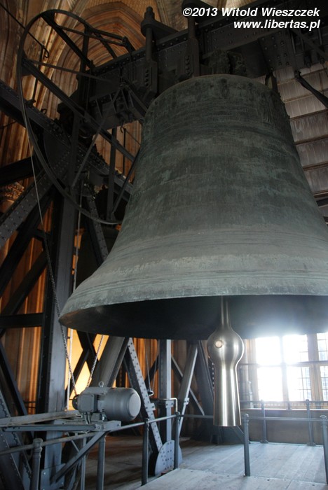 Od strony południowej znajduje się wejście na wieżę katedry, skąd można podziwiać panoramę miasta. Wieża jest otwarta dla zwiedzających w godzinach: 9–18 (od maja do września), 9–17 (w marcu, kwietniu i październiku), 9–16 (w listopadzie), a bilety wstępu kosztują odpowiednio: 3€ (dorośli), 6€ (bilet rodzinny), 1,5€ (studenci, uczniowie, inwalidzi z dowodem)3. W wieżach katedry zainstalowane jest jedenaście dzwonów, w tym najstarsze z XIV i XV wieku. Wchodząc po schodach na górę południowej wieży, możemy zobaczyć między innymi wiszący na trzeciej kondygnacji Dzwon Świętego Piotra. Jest to największy (waży 24 tony) bijący dzwon na świecie! Jego poprzednik – Dzwon Cesarski – był jeszcze większy, bo ważył 27 ton, ale pod koniec I wojny światowej został przetopiony na armaty.