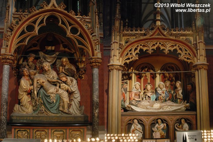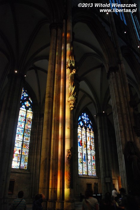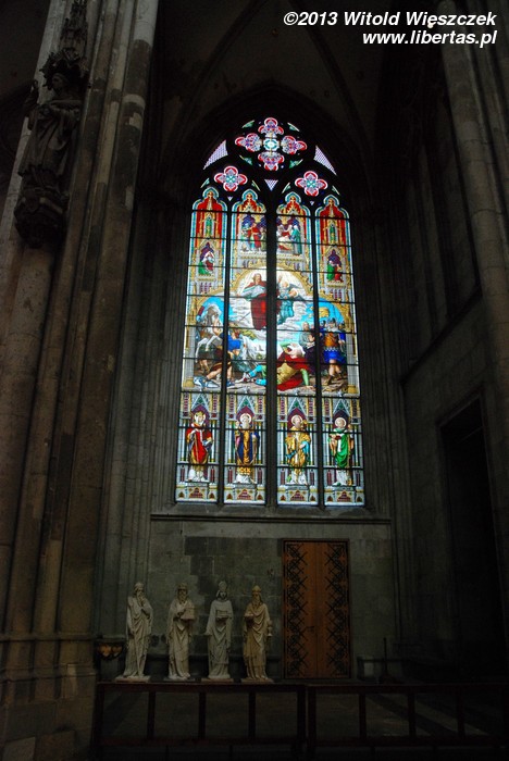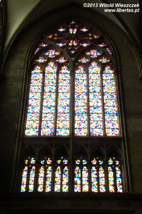 Na tle tych wszystkich bardzo starych witraży mocno zaskakuje główne okno południowego ramienia transeptu zaprojektowane przez Gerharda Richtera. Wykonany w 2007 roku witraż na pewno jest rewolucyjny i przedstawia... właściwie to nie wiem, co przedstawia. Wygląda trochę jak losowo rozrzucone różnokolorowe piksele komputerowego obrazka o niewielkiej rozdzielczości.