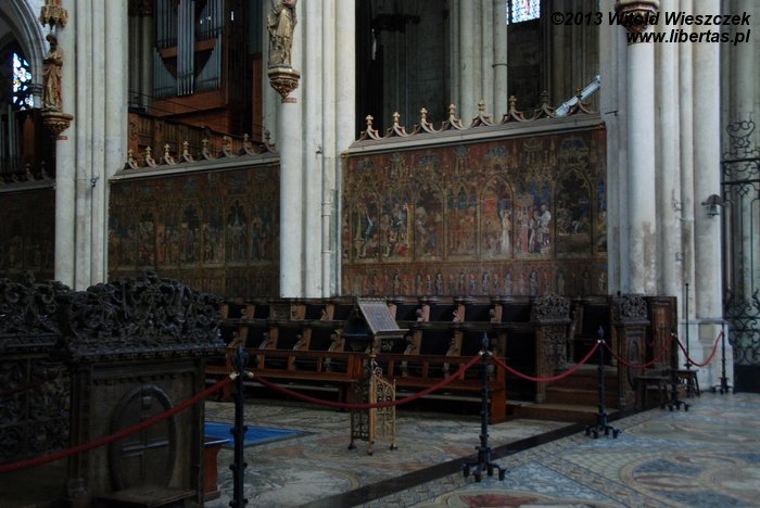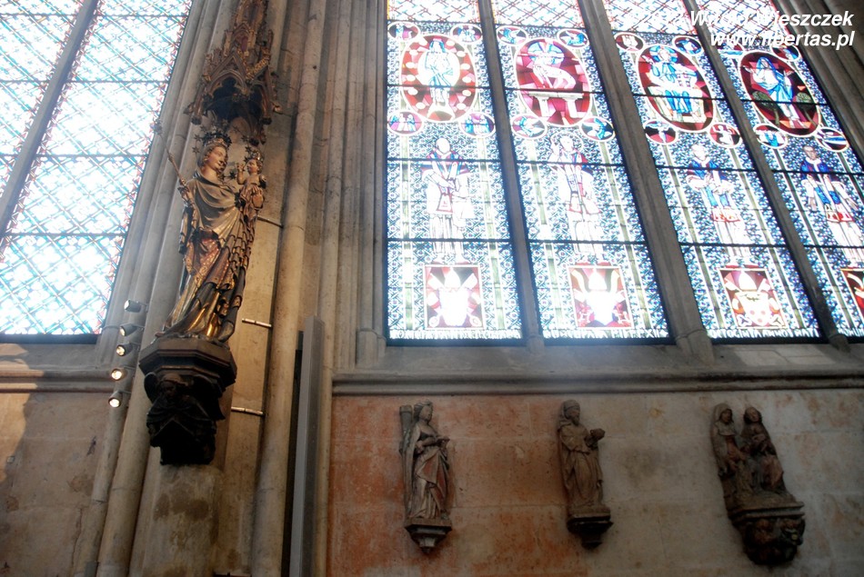 Jak na gotycką świątynię przystało powierzchnia okien katedry jest ogromna i wynosi około 10 000 m²! Wypełniają je piękne witraże, na które też warto zwrócić uwagę. Pięć witraży w północnej nawie bocznej, ufundowanych pomiędzy 1507 a 1509 rokiem, przedstawia między innymi sceny pasyjne, legendę o św. Piotrze i o korzeniu Jessego, pokłon pasterzy, pokłon Trzech Króli i koronację Marii. Na górnej kondygnacji prezbiterium znajdują się witraże królewskie (24 królów Judei i 24 Mędrców Apokalipsy) z około 1310 roku, a najstarsze, trzynastowieczne witraże znajdują się w oknach ambitu i przedstawiają motywy ze Starego i Nowego Testamentu. W południowej nawie bocznej można zobaczyć pięć witraży bawarskich ufundowanych w roku 1842 przez króla Ludwika I Bawarskiego (wstawione w 1848 r.). Przedstawiają one kazanie Jana Chrzciciela, pokłon pasterzy i królów, zdjęcie z krzyża, zstąpienie Ducha Świętego oraz ukamienowanie św. Stefana.