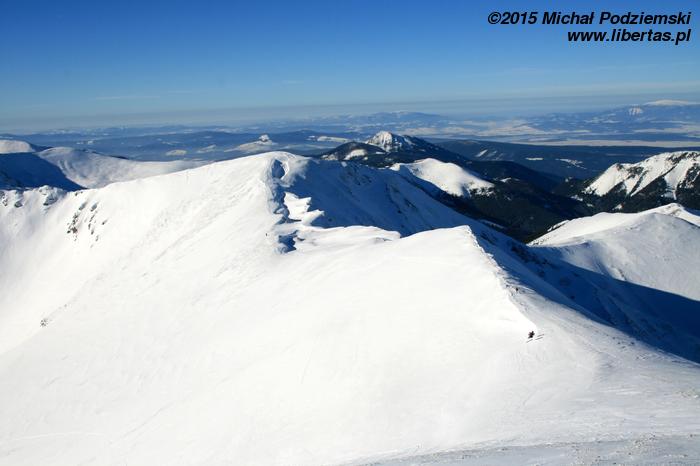 Jeśli nie musimy martwić się samochodem pozostawionym na parkingu w Kirach, w drodze powrotnej warto „zahaczyć” o jeszcze jeden dwutysięcznik – Kończysty Wierch. Przejście na niego ze Starorobociańskiego Wierchu to jakieś pół godziny drogi – najpierw schodzimy czerwonym szlakiem na Starorobociańską Przełęcz, a później podchodzimy na Kończysty Wierch. Cały czas towarzyszą nam wspaniałe widoki – znajdujemy się przecież na grani Tatr Zachodnich. Ze szczytu możemy podziwiać dumnie wznoszący się nad nami Starorobociański Wierch, a także Dolinę Raczkową, za którą w oddali widać Niżne Tatry.